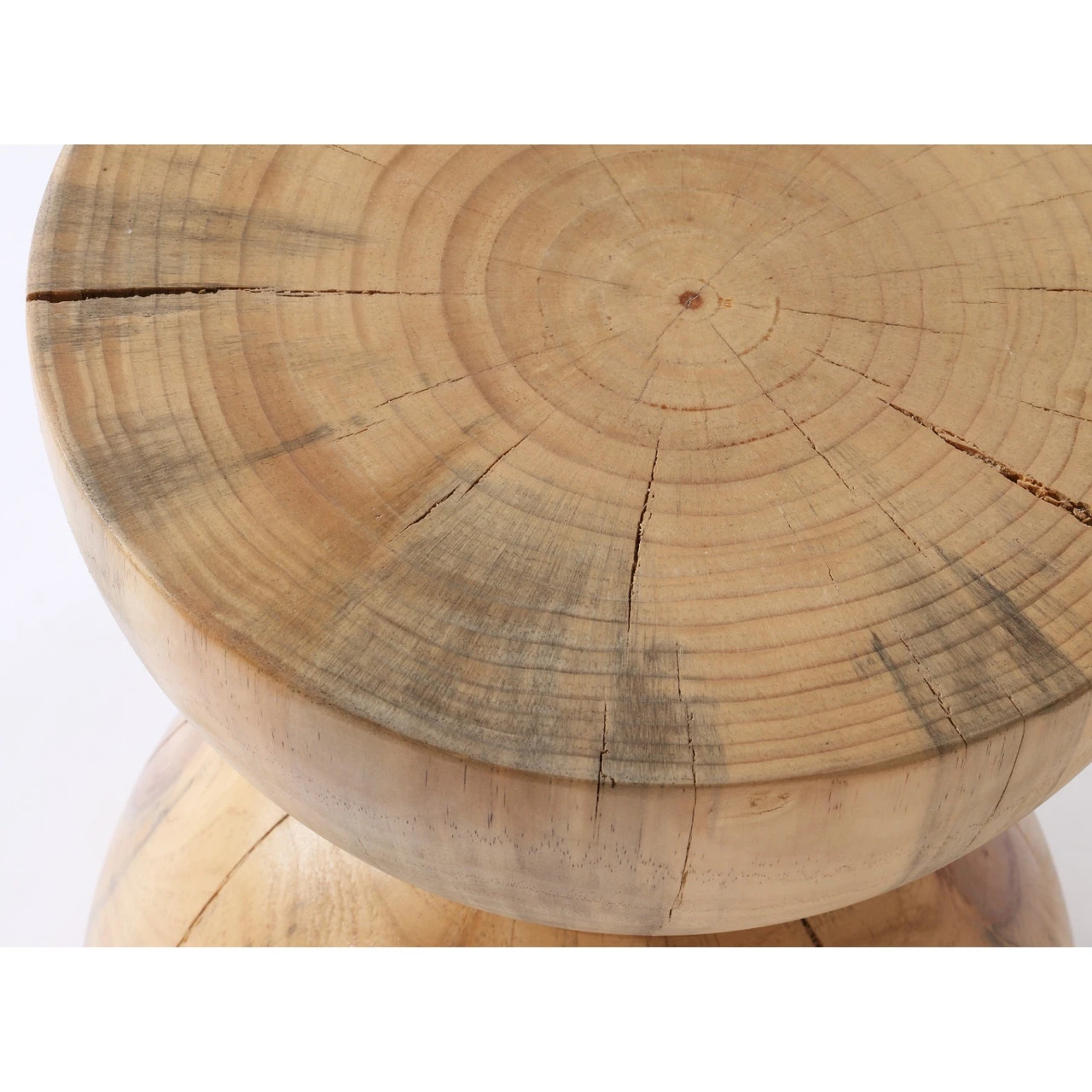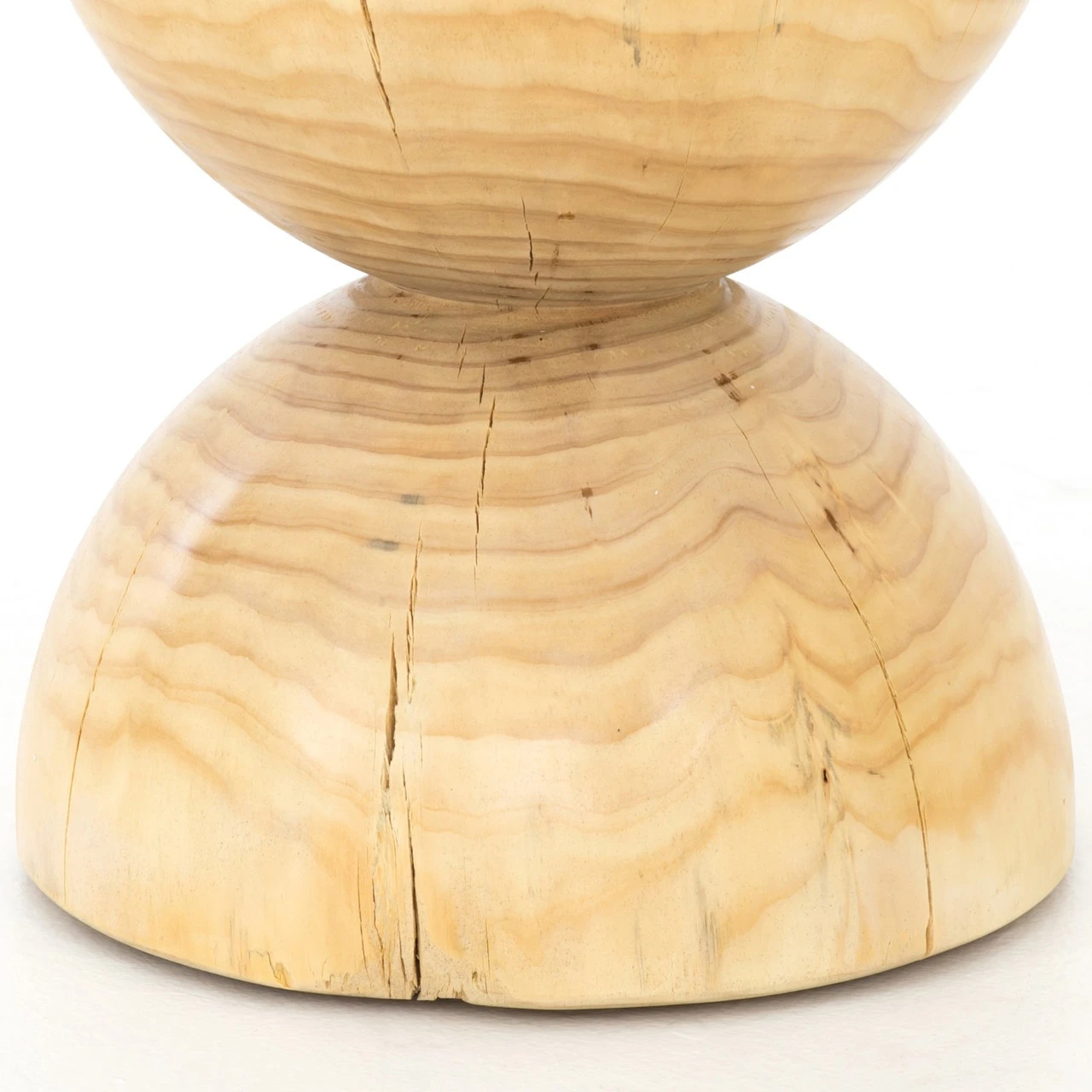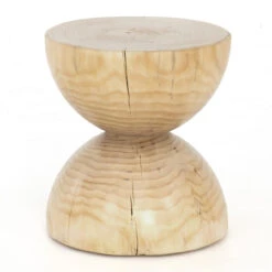 Solid natural pine fashions into an hourglass silhouette for an organic look with shapely allure. Makes for a handy extra surface solo or paired. Due to materials’ natural essence, cracks are to be expected and may develop over time. Knots, color variance and blue stain will vary from piece to piece – no two are alike.