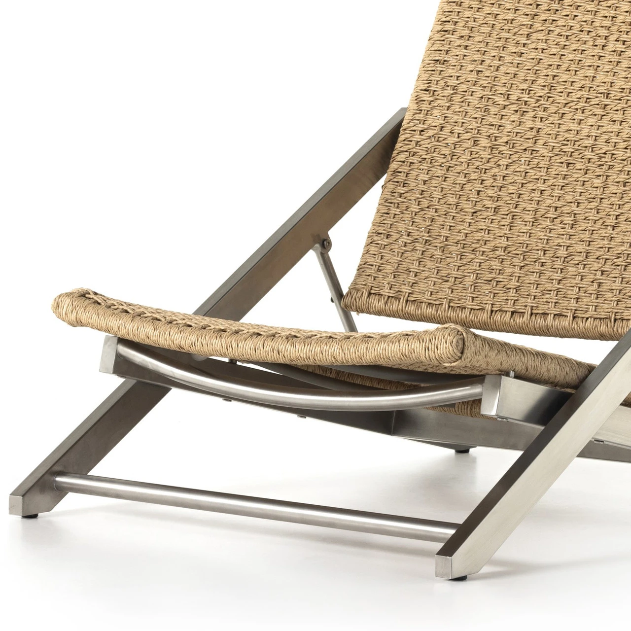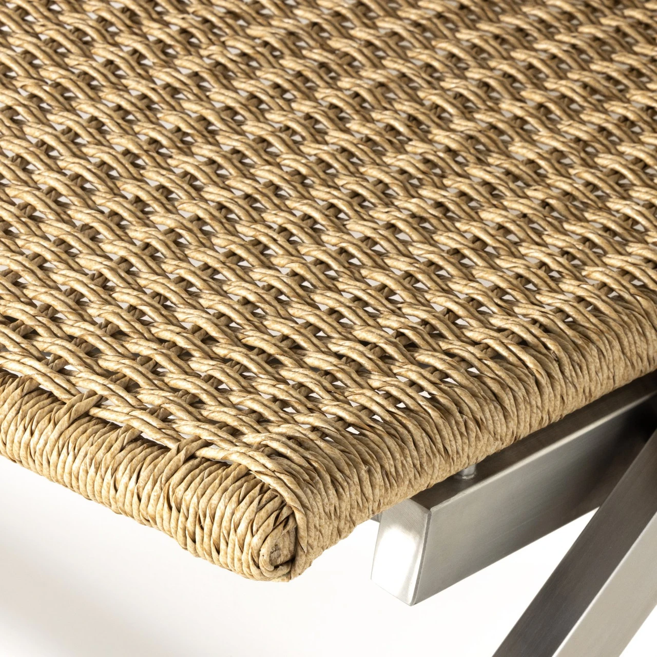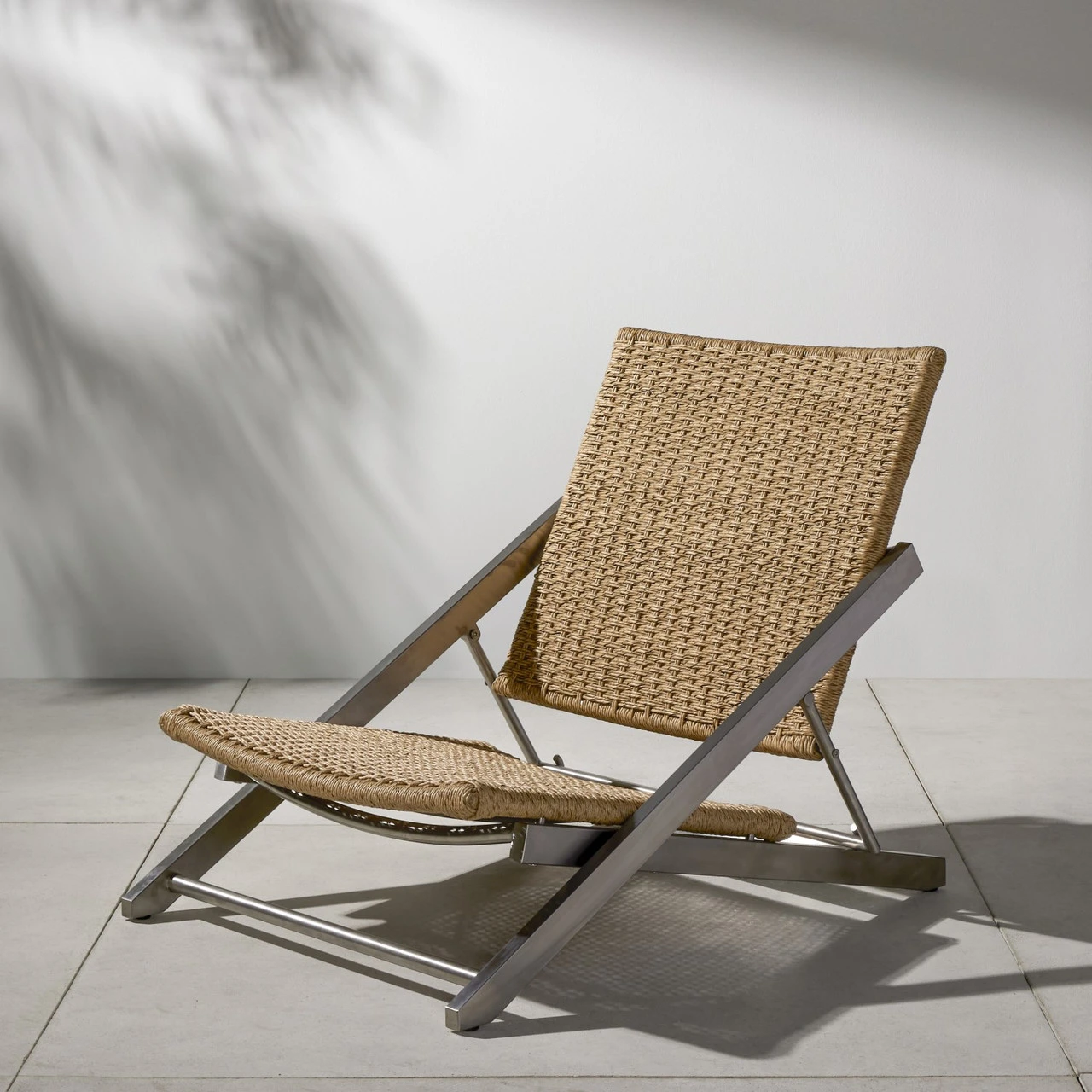 The outdoor folding chair gets a modern, grownup upgrade. A low profile meets high style with a woven seat and back paired with a stainless steel frame giving a subtle nod to midcentury material mixes. Cover or store indoors during inclement weather and when not in use.