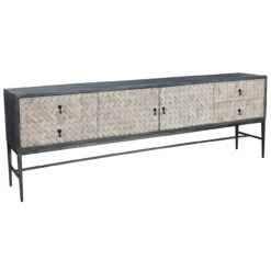 Combining craftsmanship and functionality, this sideboard features a herringbone pattern while four drawers and two shelves provide ample storage. This hand-finished piece preserves the character of reclaimed wood with classic lines to suit any style.