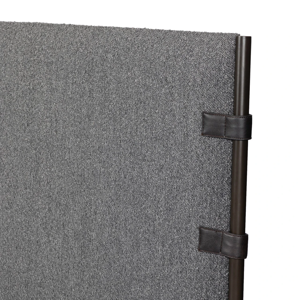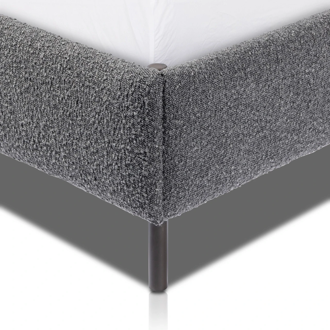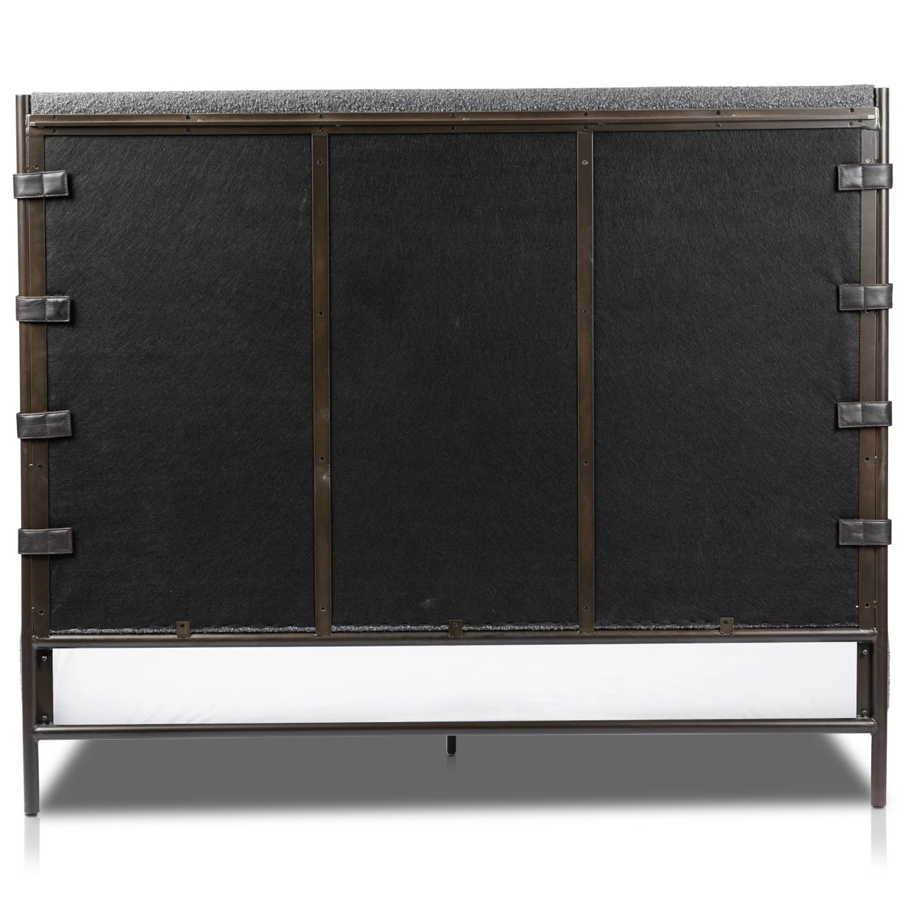 Bring texture into play. Upholstered in a grey boucle, with decorative leather straps adding a material-driven touch. Standard box spring required. Performance fabrics are specially created to withstand spills, stains, high traffic and wear, ensuring long-term comfort and unmatched durability.