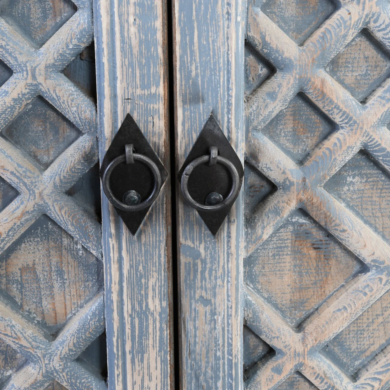 Understated blue tones and a chic carved design gives this classic sideboard a charming look that dresses up any space.
