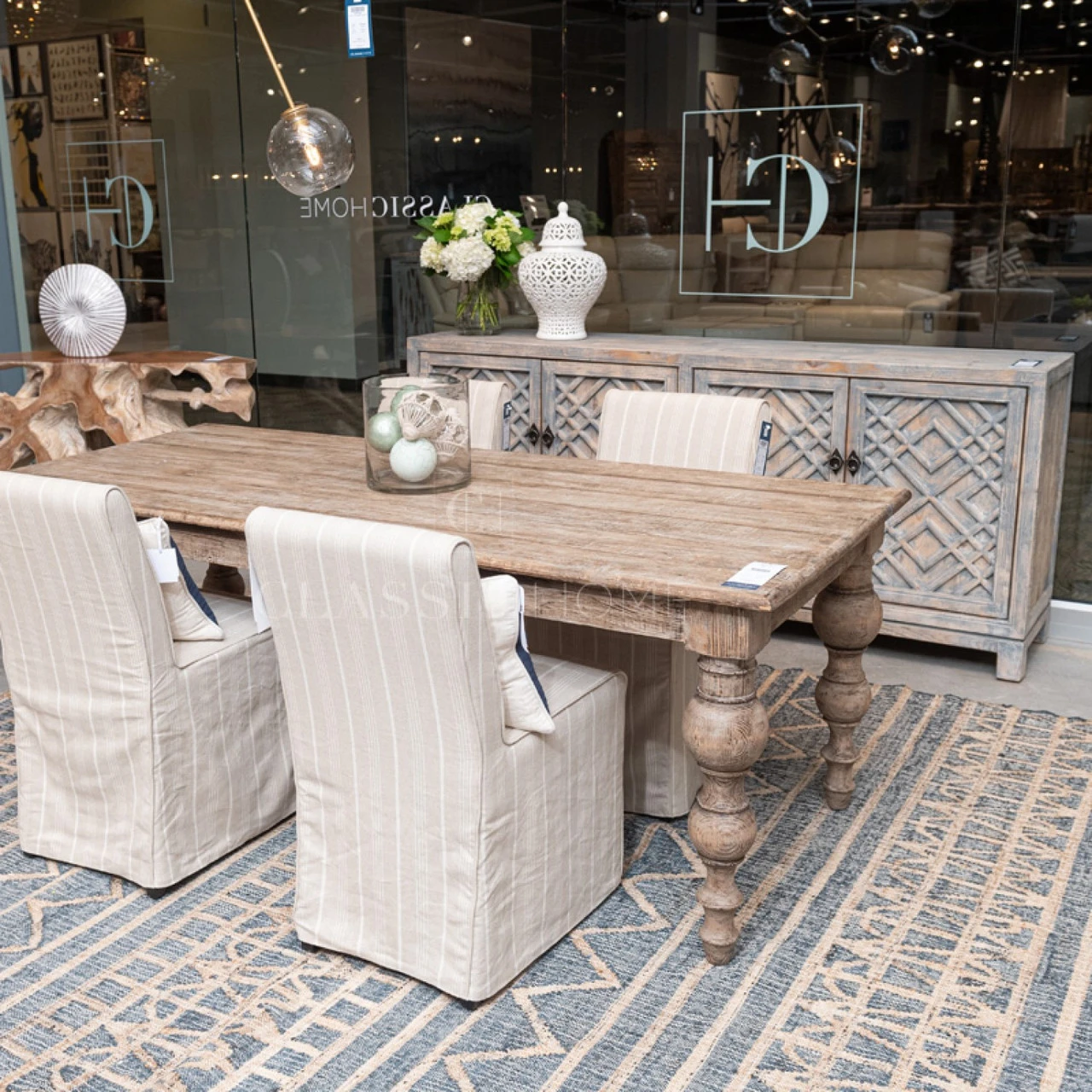 Our designs blend traditional techniques with contemporary details to create unique pieces that transcend their inspiration. We design every piece with the entirety of our collection in mind, making sure they work as standalone objects and serve the aesthetics of any space. Skilled craftspeople apply their artistry to solid wood, natural fibers, fabrics, and forged metal to create our inspired pieces. Hand woven rugs, kiln dried wood furniture, and fabric stonewashing give you textures, colorways, and forms that contribute to dynamic and inviting spaces. We preserve the variations found in our natural materials and craft processes to enrich their designs. Also, we use only plantation grown or reclaimed wood in our furniture and hand harvested natural fibers in our rugs. Several of our factories also meet Forest Stewardship Council production and fair-trade guidelines.
