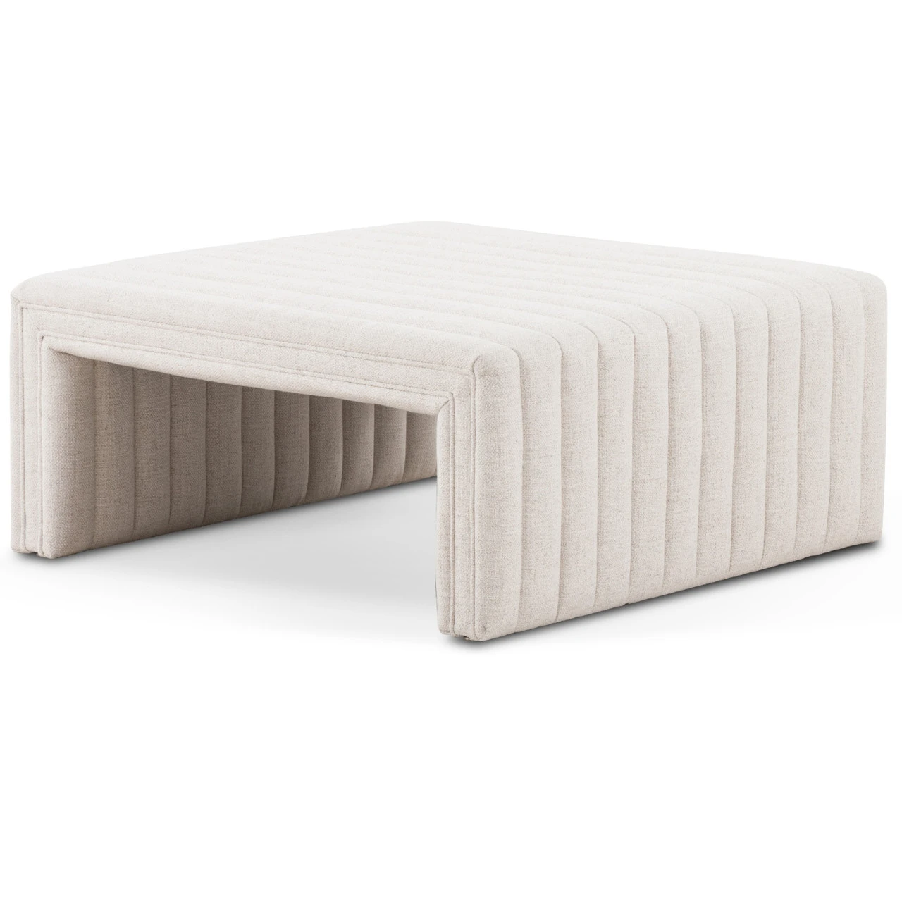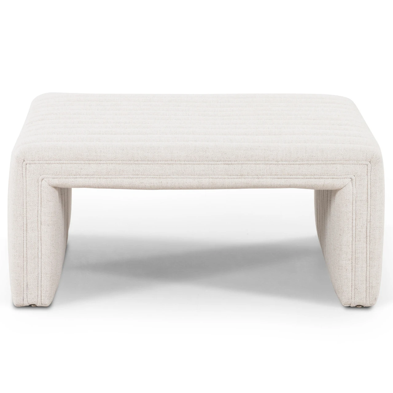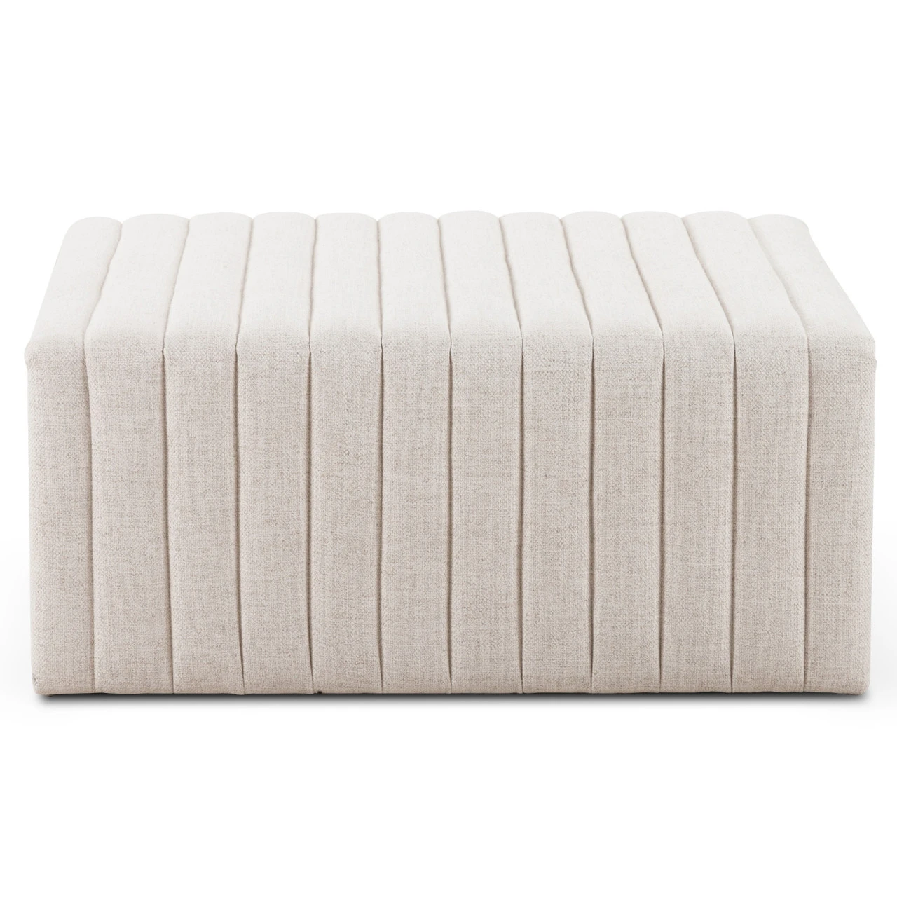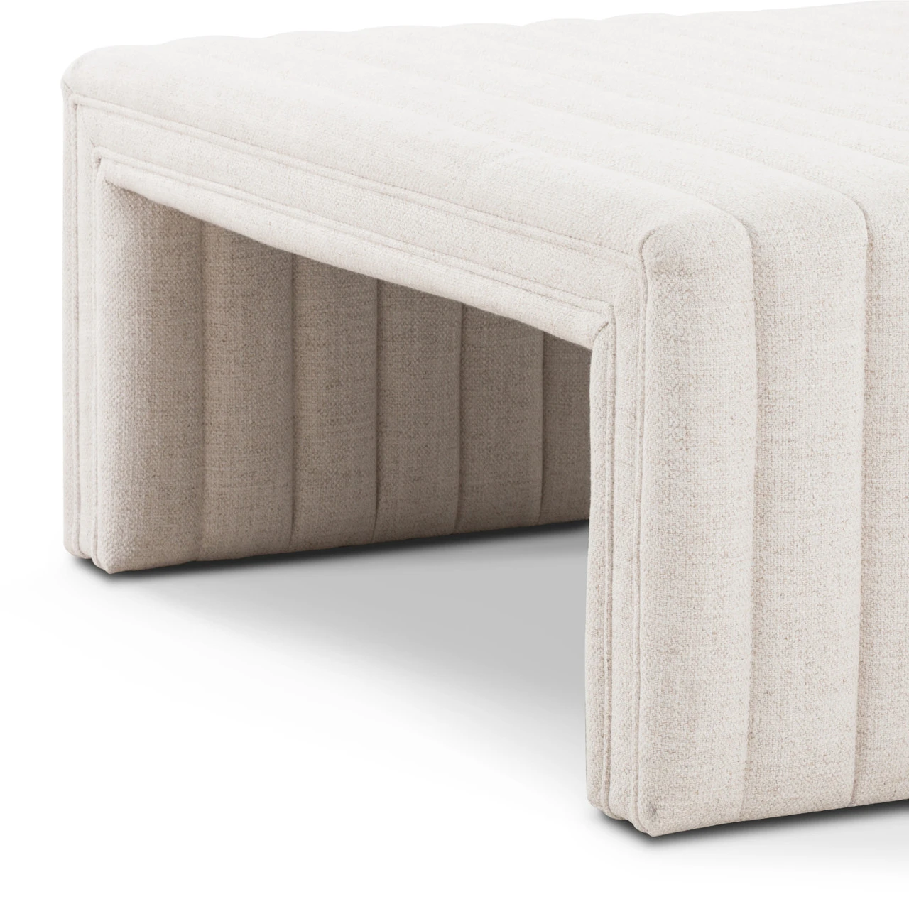 Layer in an extra surface or added seating by way of a linen-blend ottoman in a crisp, clean off-white, with dramatic channeling for great texture.