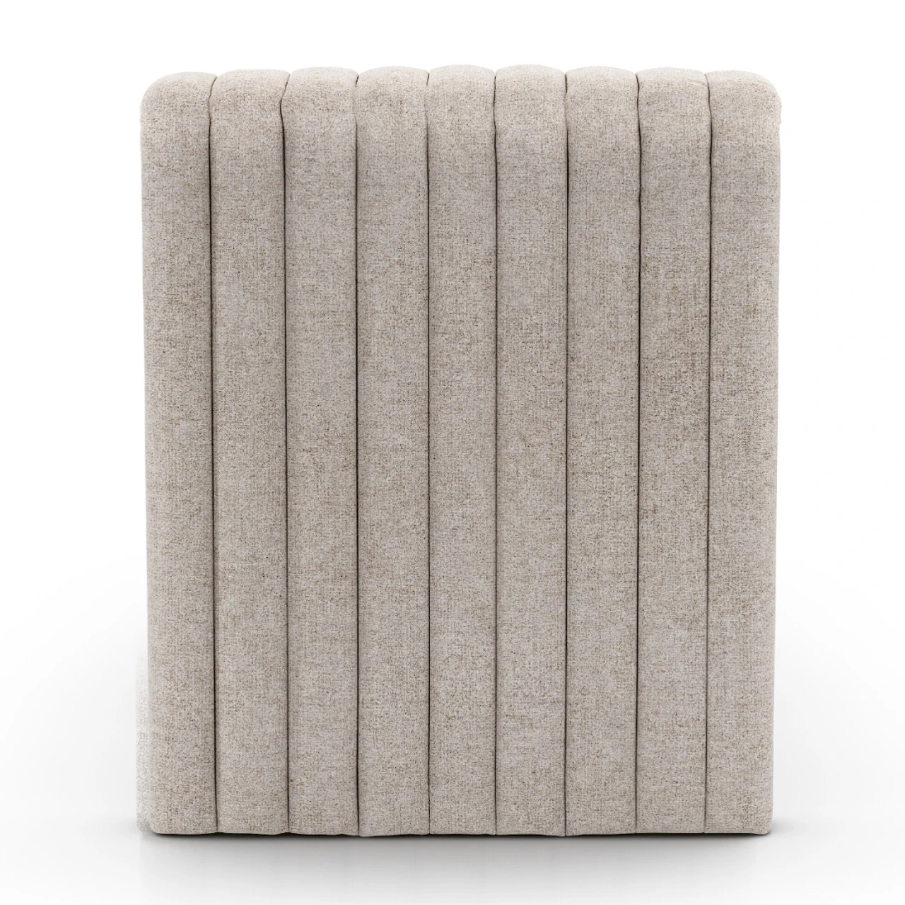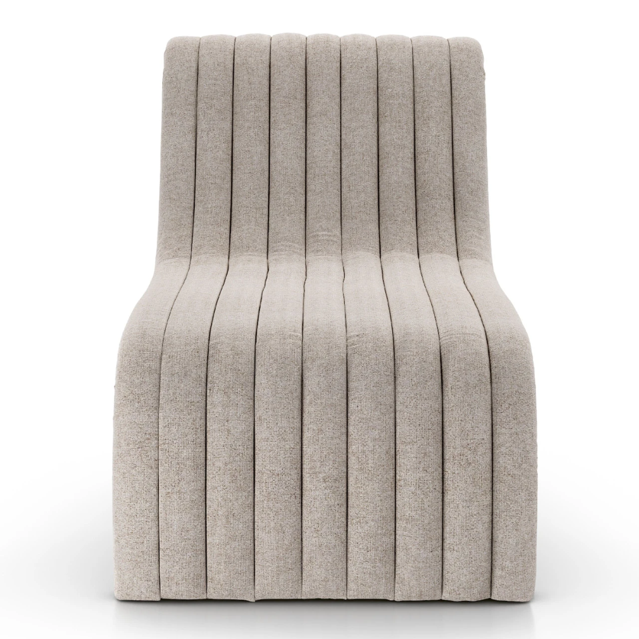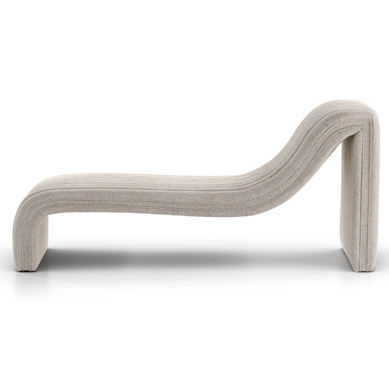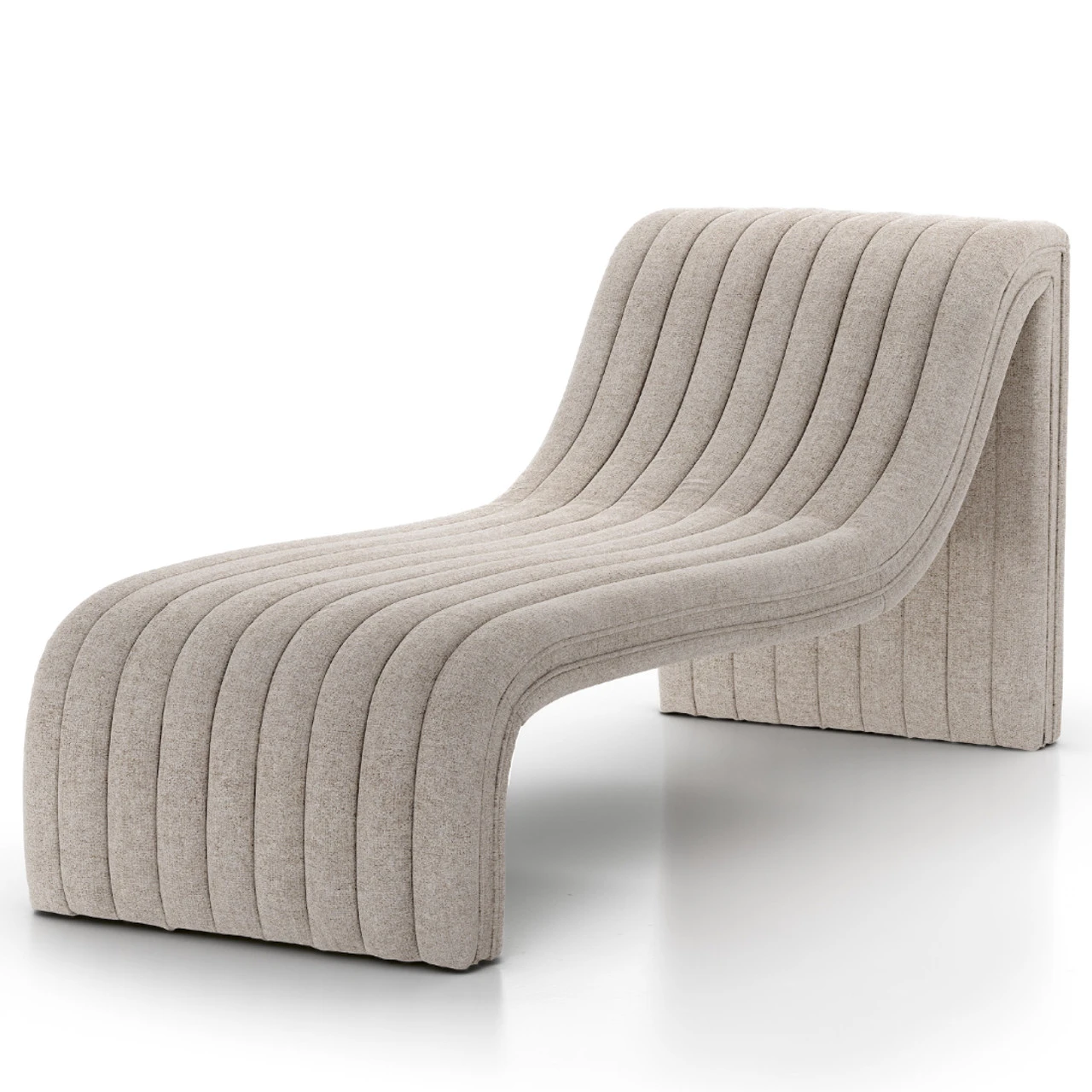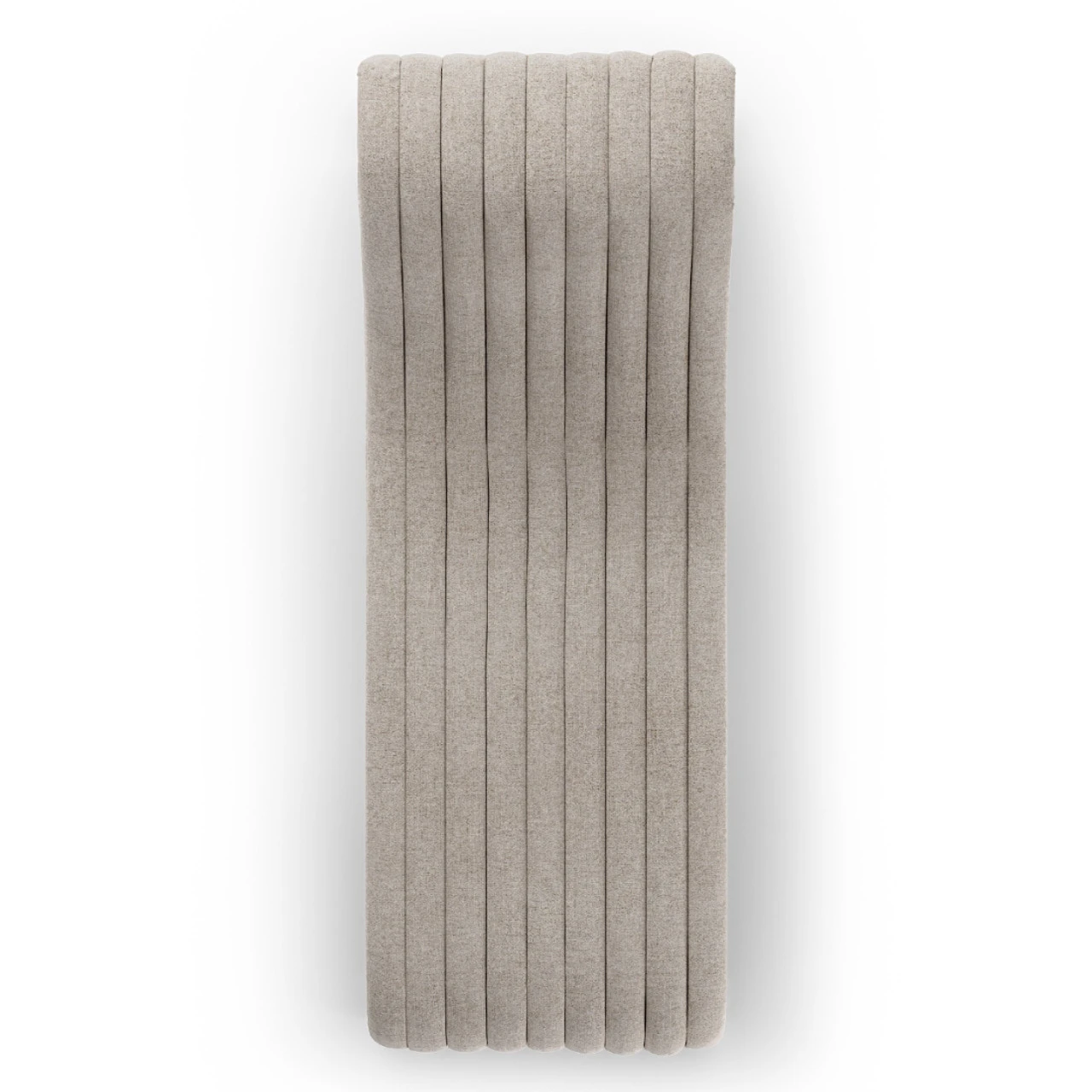 A modern take on classic chaise, textural polyester seating with a subtle herringbone pattern adopts dramatic linear channeling for texture and comfort alike.