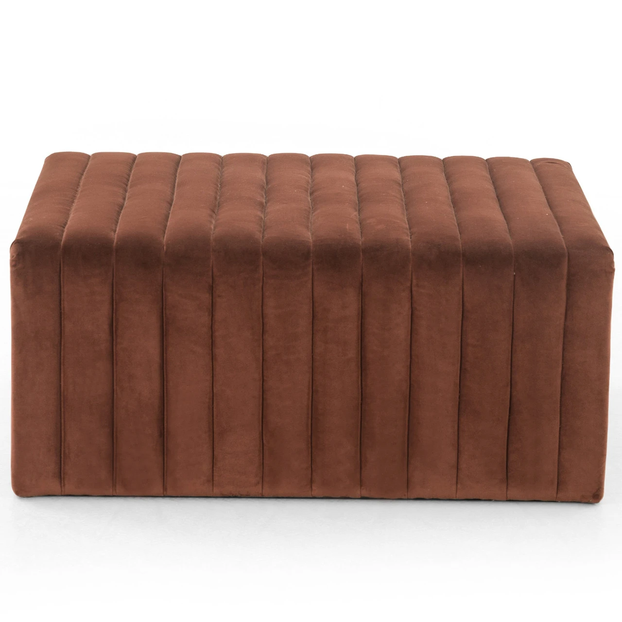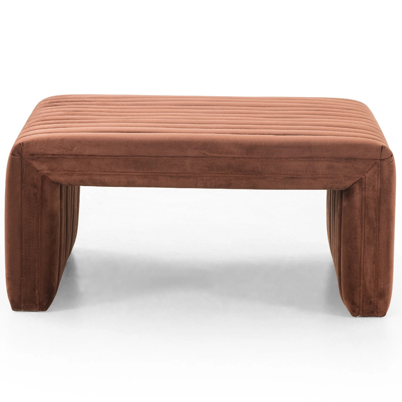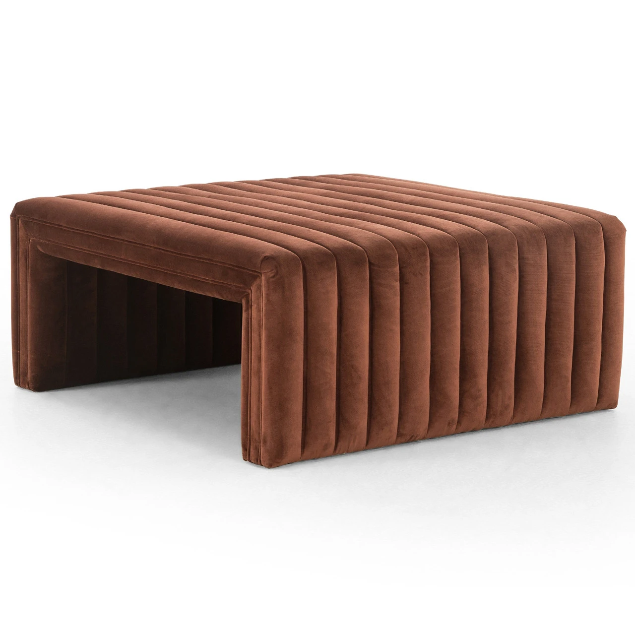 Velvety poly-blend in a rich auburn hue takes on dramatic channeling, lending trend-forward texture to this sumptuous perch.