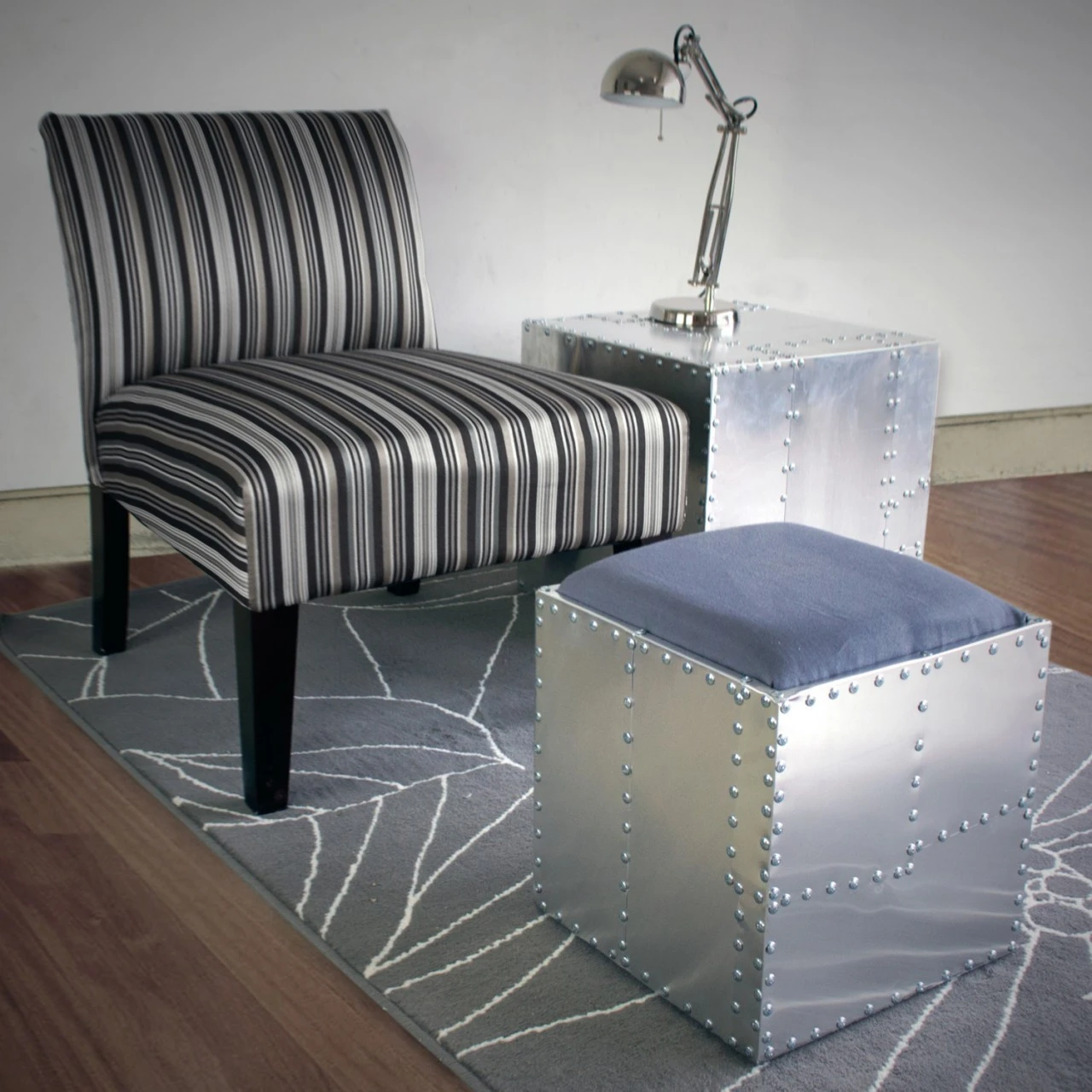 Each ottoman is unique piece of art with its own, hand-crafted chracteristics and will vary slightly in appearance. Aluminum is a soft, durable material and minor scratches/scuffs are part of the design and not a defect.Â