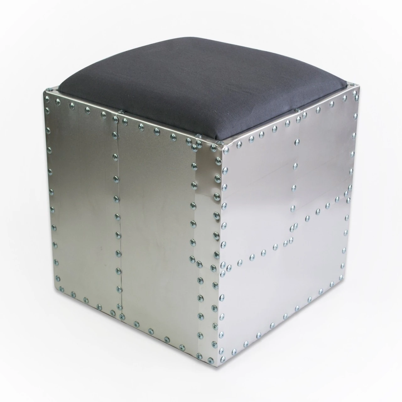 The Aeromen + Aluminum is inspired by the classic and iconic lines of the vintage World War II aircrafts. The Aeromen Ottoman is hand-crafted by skilled artisans in the U.S and features a aluminum wrapped wood body with a military-style canvas upholstered top. All the materials such as the wood, metal and the canvas are sourced here in the U.S.Â