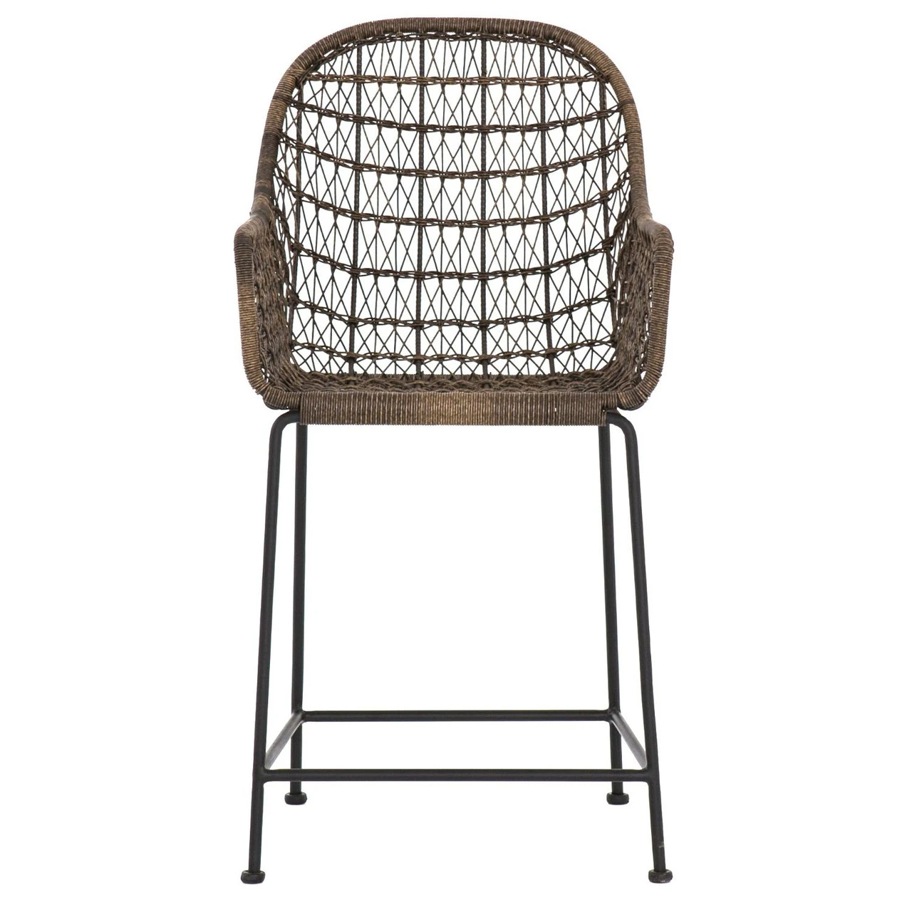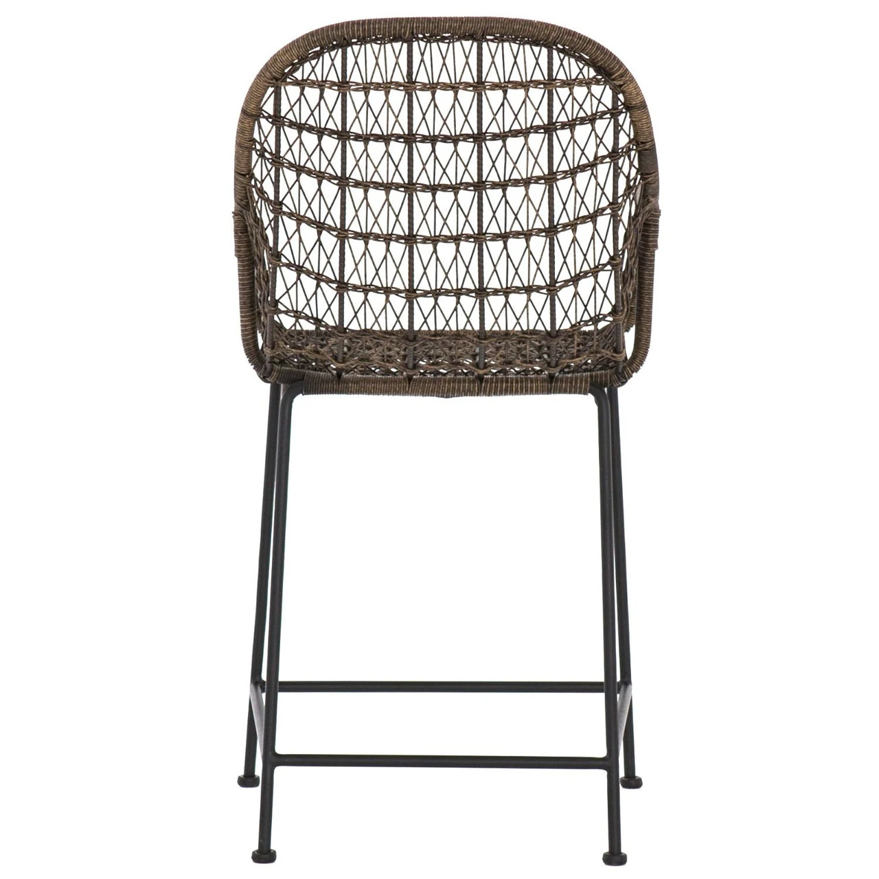 Contemporary shaping and an updated weave transform all-weather wicker into something modern. Club-style seating is supported by a slim, contrasting black iron base. Safe for outdoor spaces. Cover or store indoors during inclement weather and when not in use.