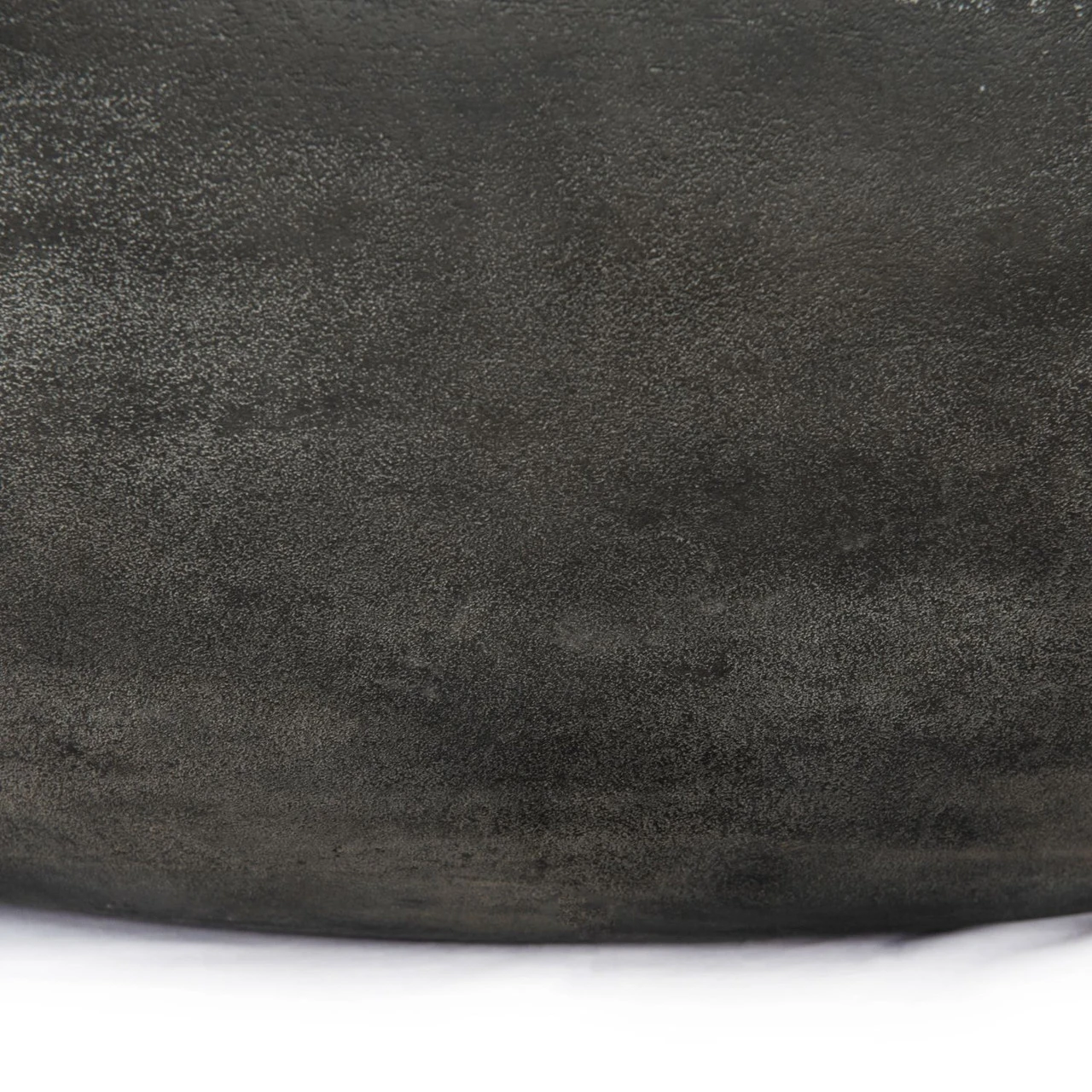 An aged grey finish highlights aluminum’s natural depth, for a sleek, simple look with implied movement. Stylish indoors or out. Cover or store indoors during inclement weather and when not in use.