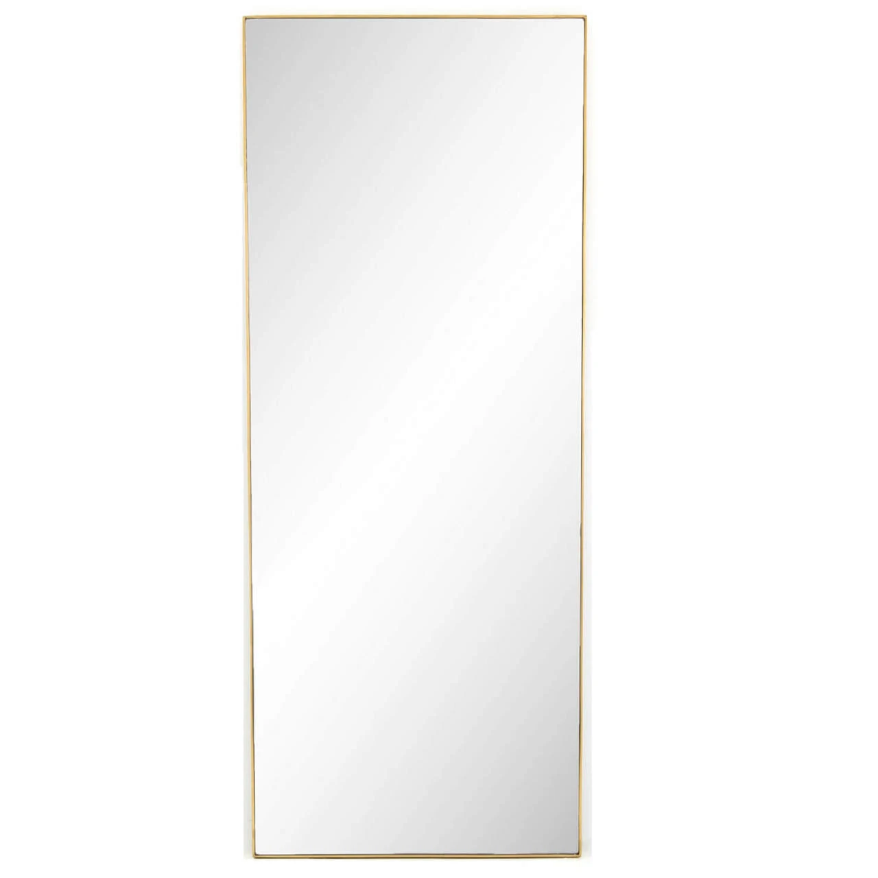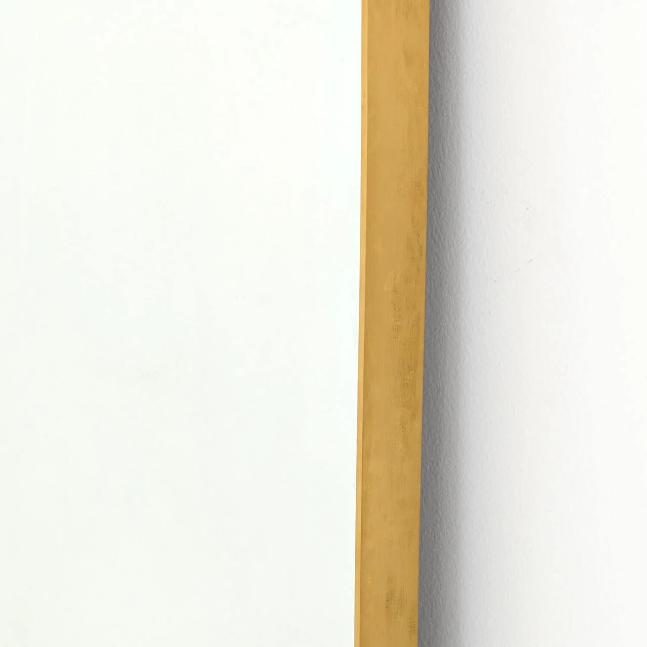 Grace on the edge of modernity. Rectangular stainless steel takes on a polished brass tone to let clean, mirrored glass speak for itself. Open any space in one easy lean.