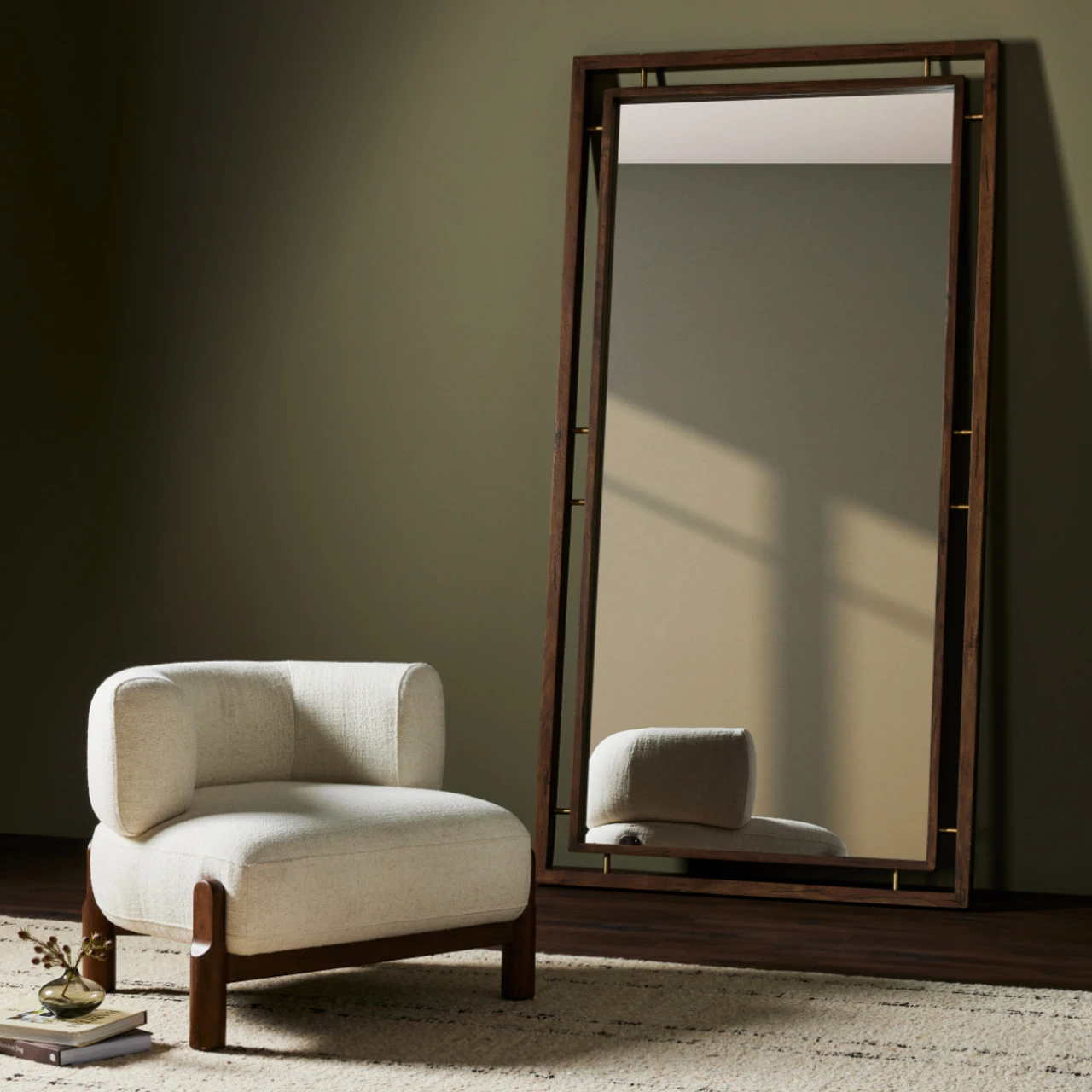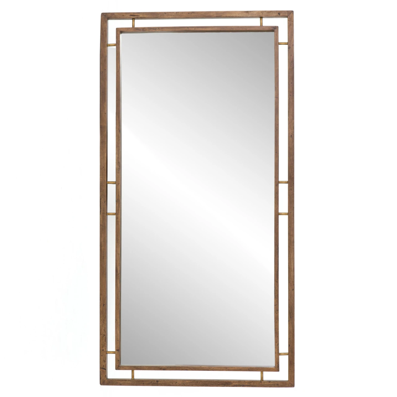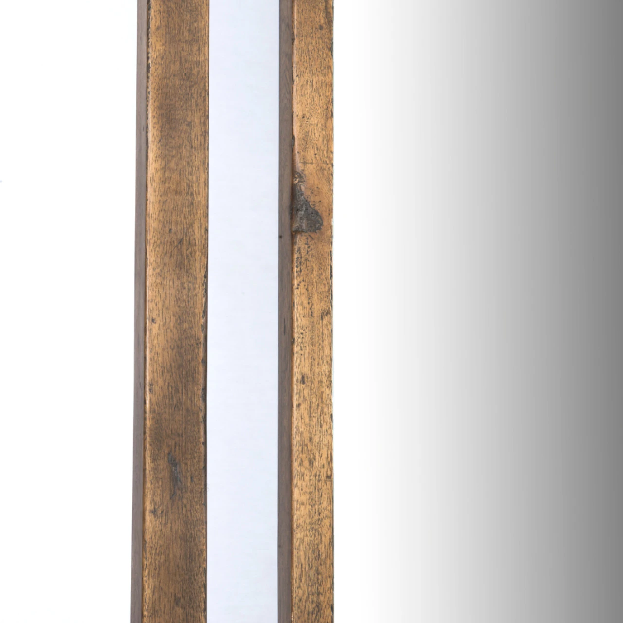 Barred weathered acacia plus antique brass accents form a frame with double the impact. The juxtaposition of rustic materials and modern detail reflect a trend-forward likeness.
