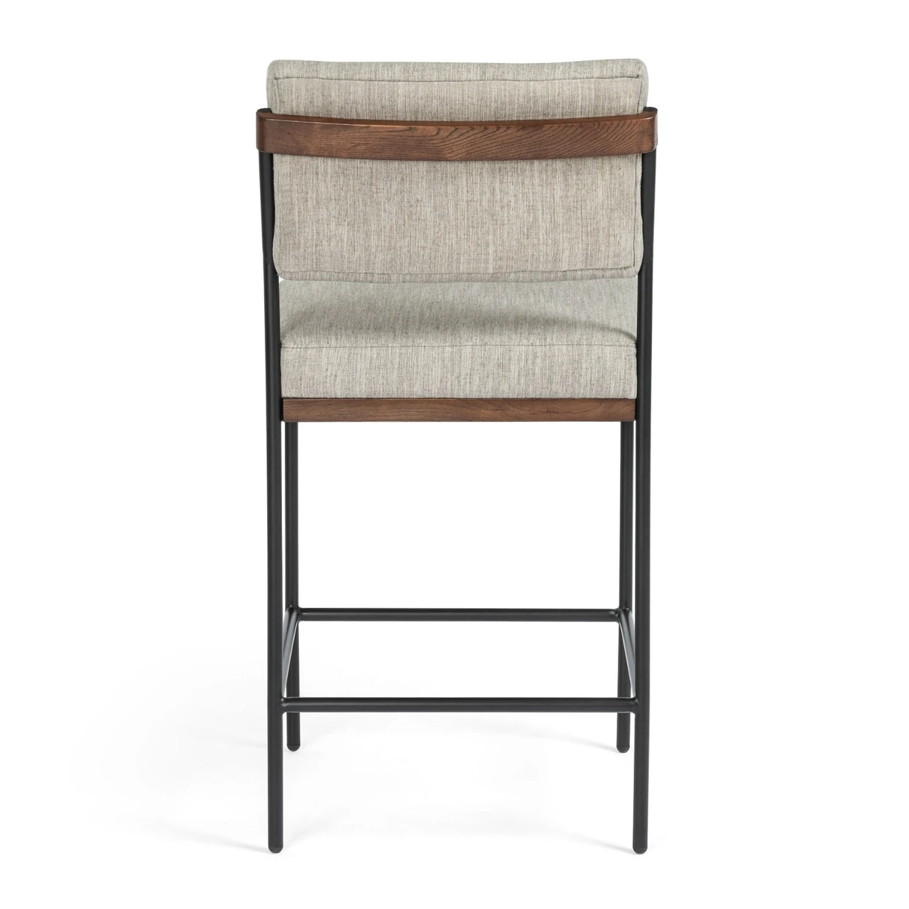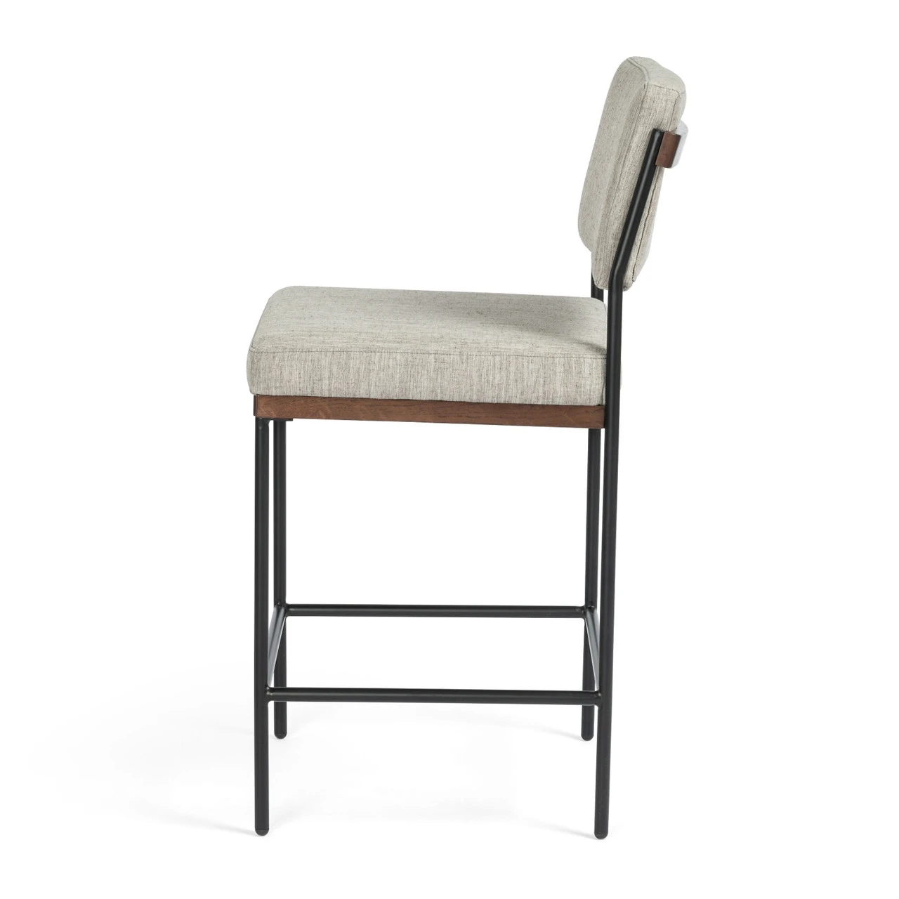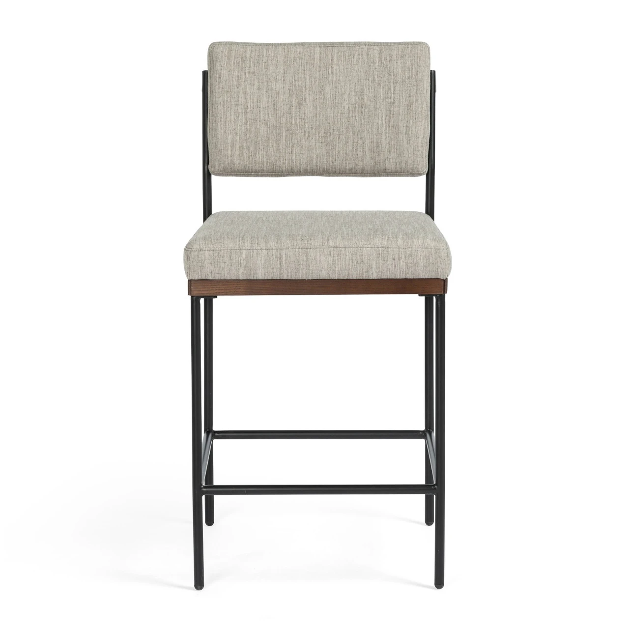 Thoughtful details add character to counter, bar or table. Swivel seating is covered in cotton canvas, linen blends and rich leathers. Dark or weathered gray solid wood frames are characterized by slim tapers, soft splays and curved stretchers.
