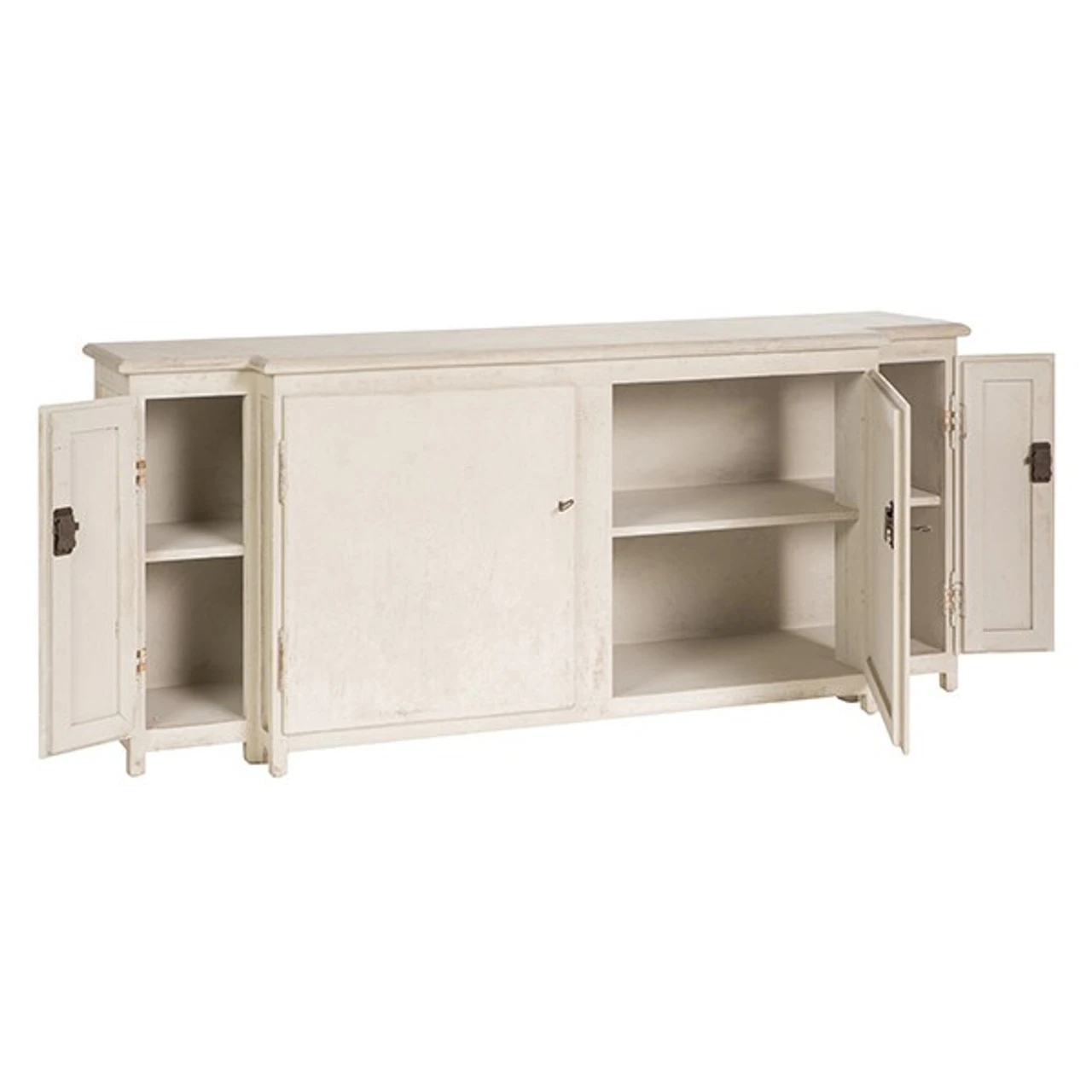 Simplicity at its finest equipped for todays life style, this long, low Swedish console fits a flat screen and all its interworking’s perfectly below. Finished in the milk paint tradition, the colors are subtle blends with layers upon one another to create a perfect patina and rich color.