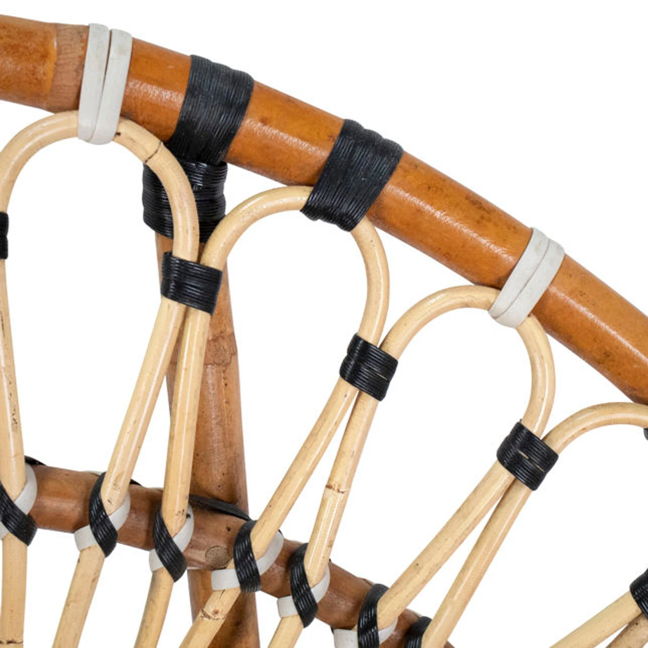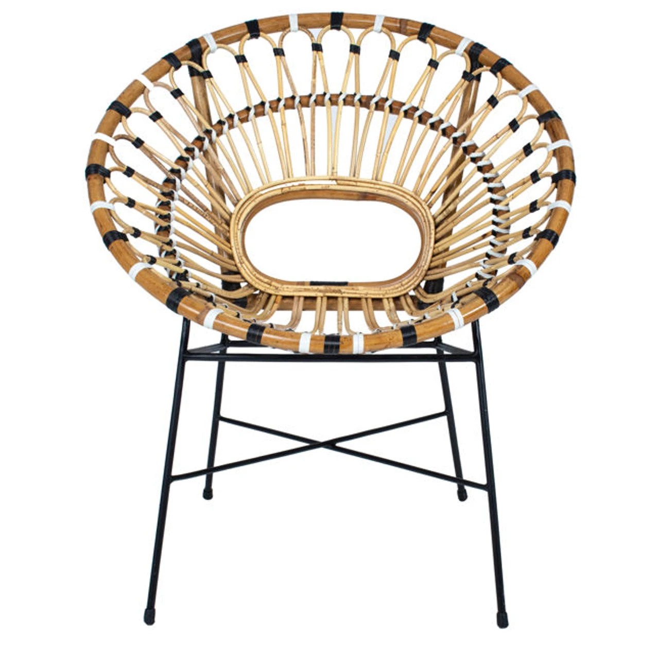 - Finish:Â Natural Rattan Finish with Black and White Accents