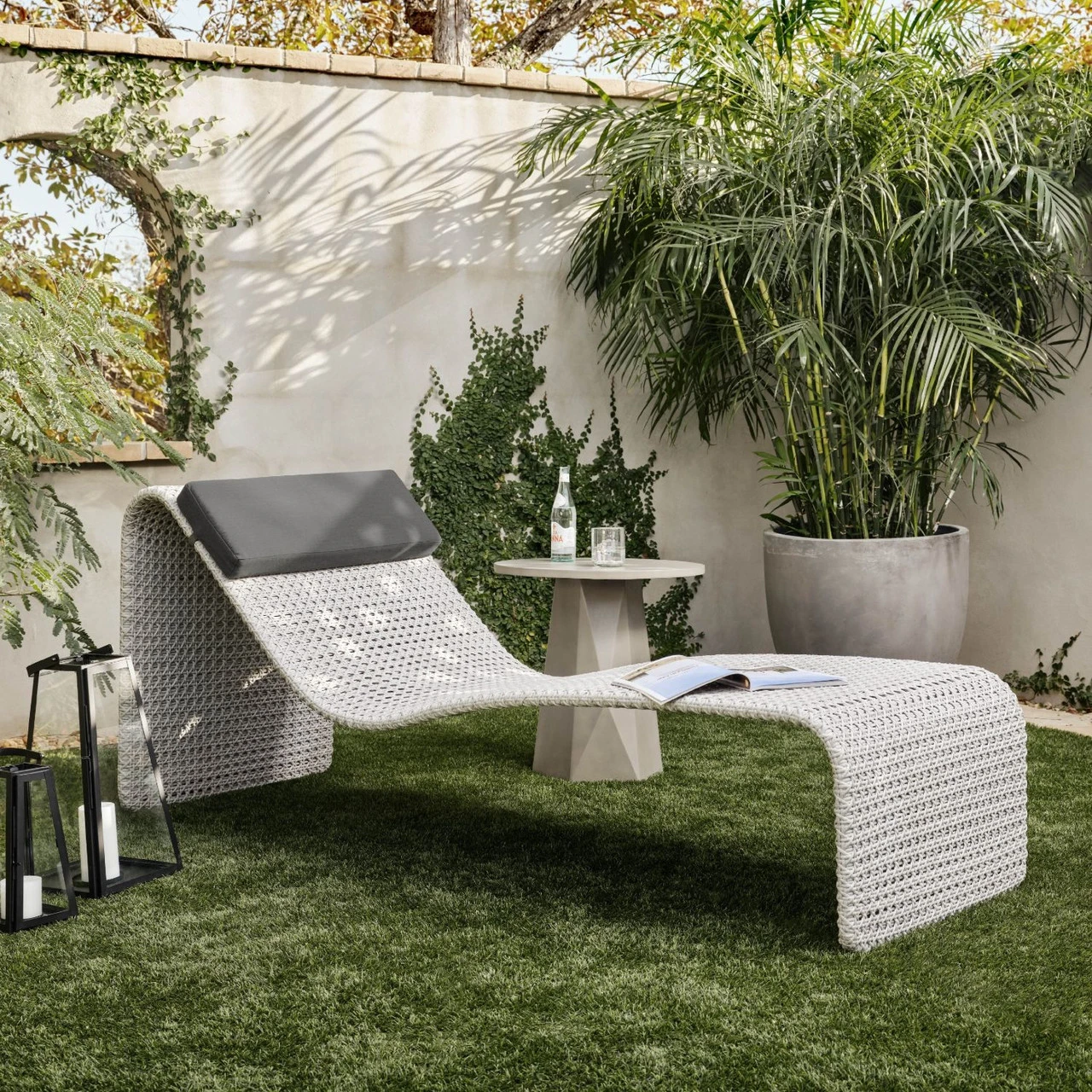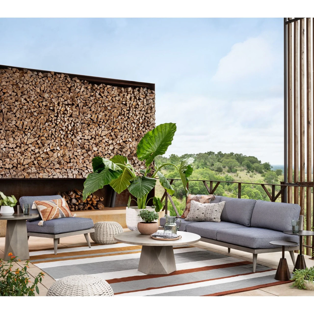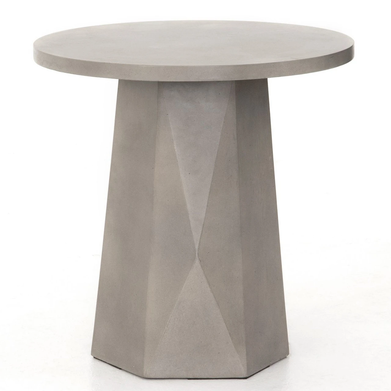 Grey concrete forms a faceted base for impact from every angle. A rounded top is ready to make an organic statement indoors or out. Cover or store inside during inclement weather and when not in use.