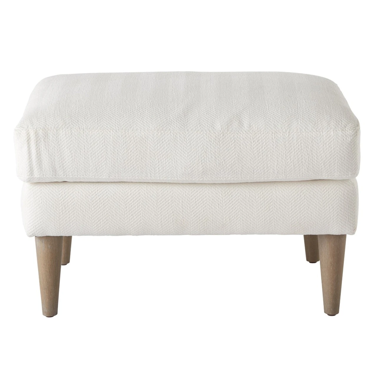 The Brentwood Ottoman features tapered legs and a refined silhouette, upholstered in a Justify Natural performance fabric. Style alone or pair with the Brentwood Chair for additional chicness. The family-friendly Brentwood Ottoman, Sofa, and Chair are upholstered in performance fabric that resists stains, spills, and pilling.
