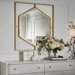 A light and airy addition to any bedroom, the Brentwood Dresser features Alabaster finished drawer fronts with chic soft gold and acrylic bar hardware, six spacious drawers, and a gleaming white lacquer case.