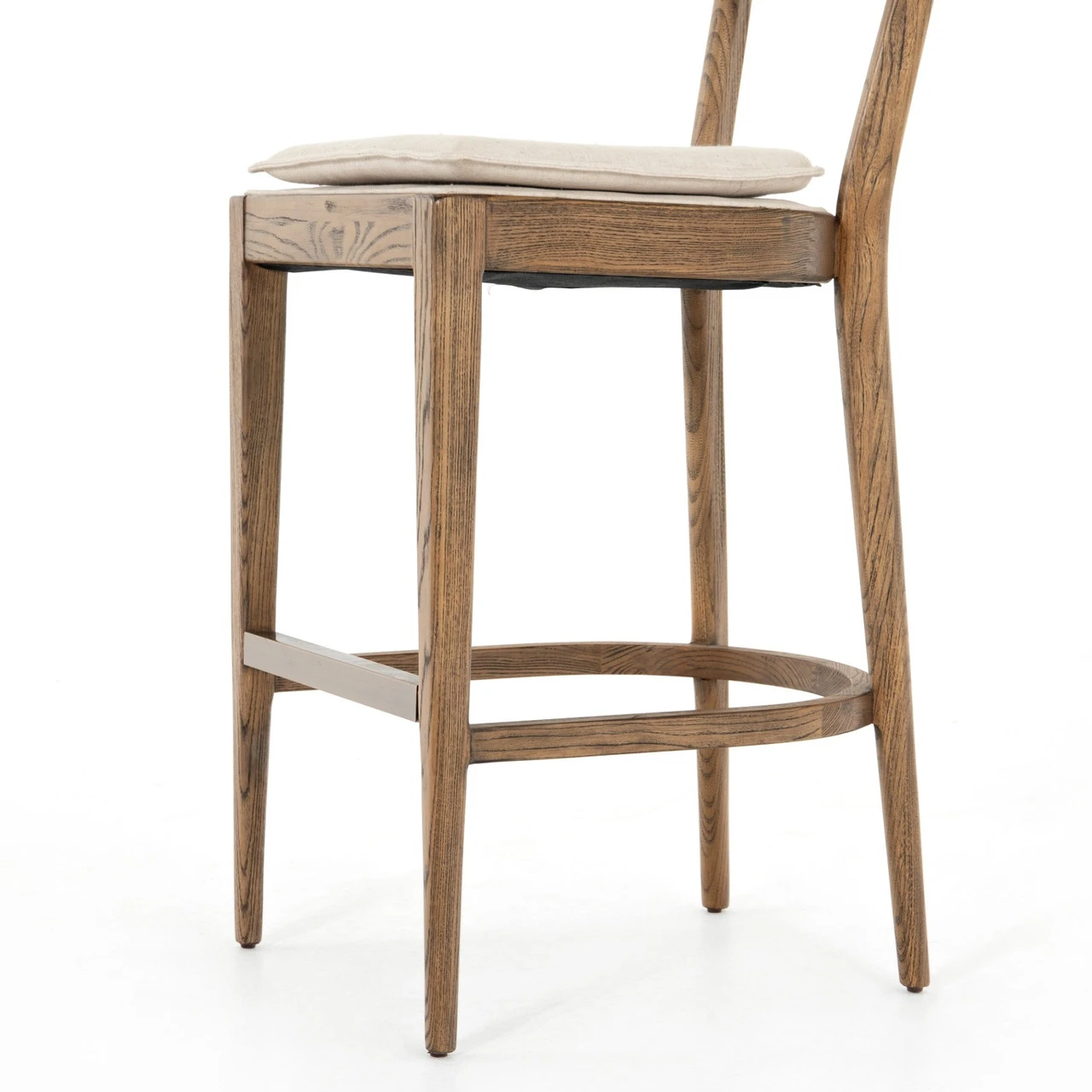 Thoughtful details add character to counter, bar or table. Swivel seating is covered in cotton canvas, linen blends and rich leathers. Dark or weathered gray solid wood frames are characterized by slim tapers, soft splays and curved stretchers.