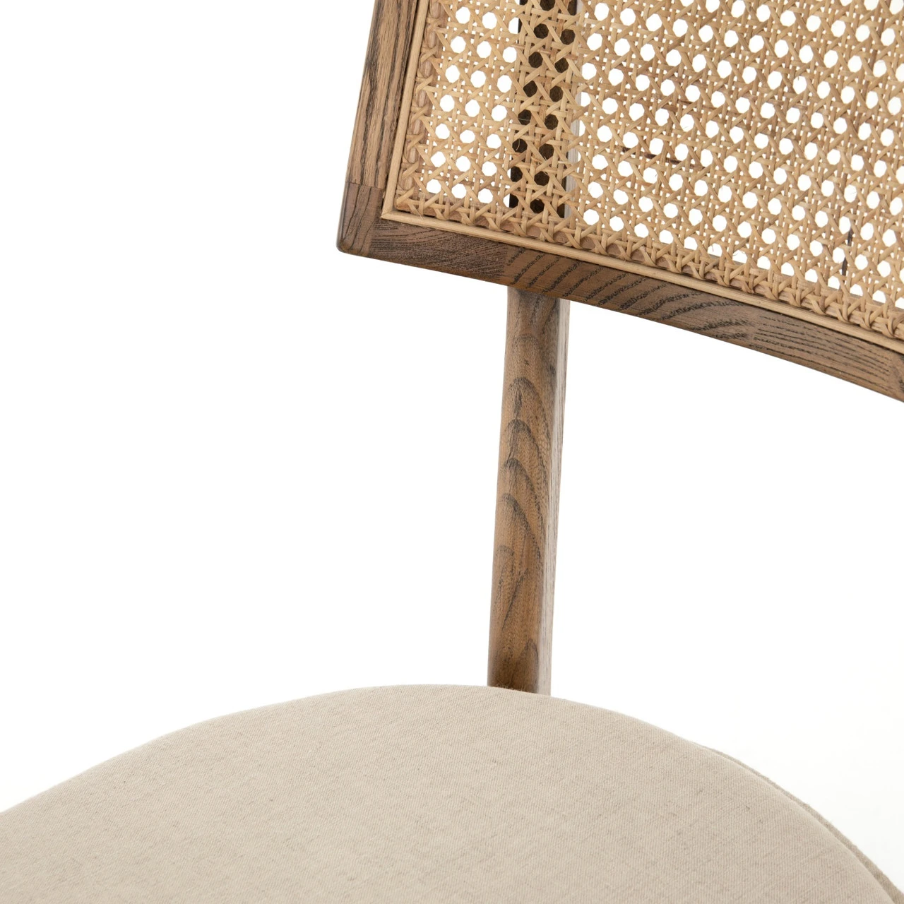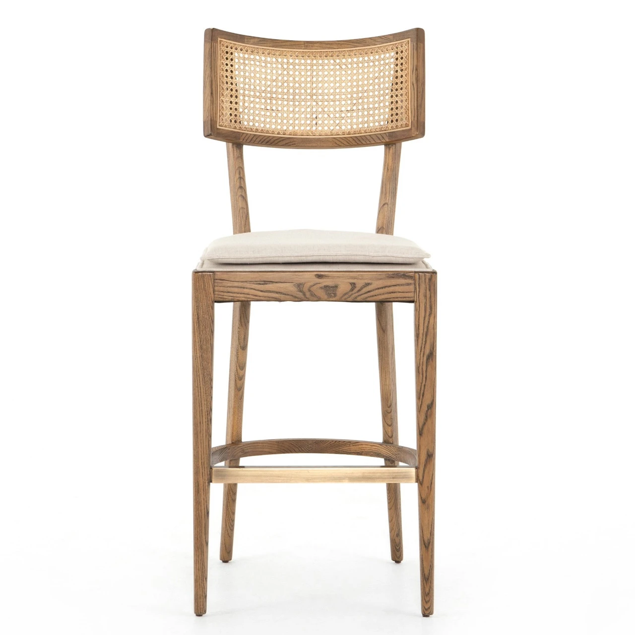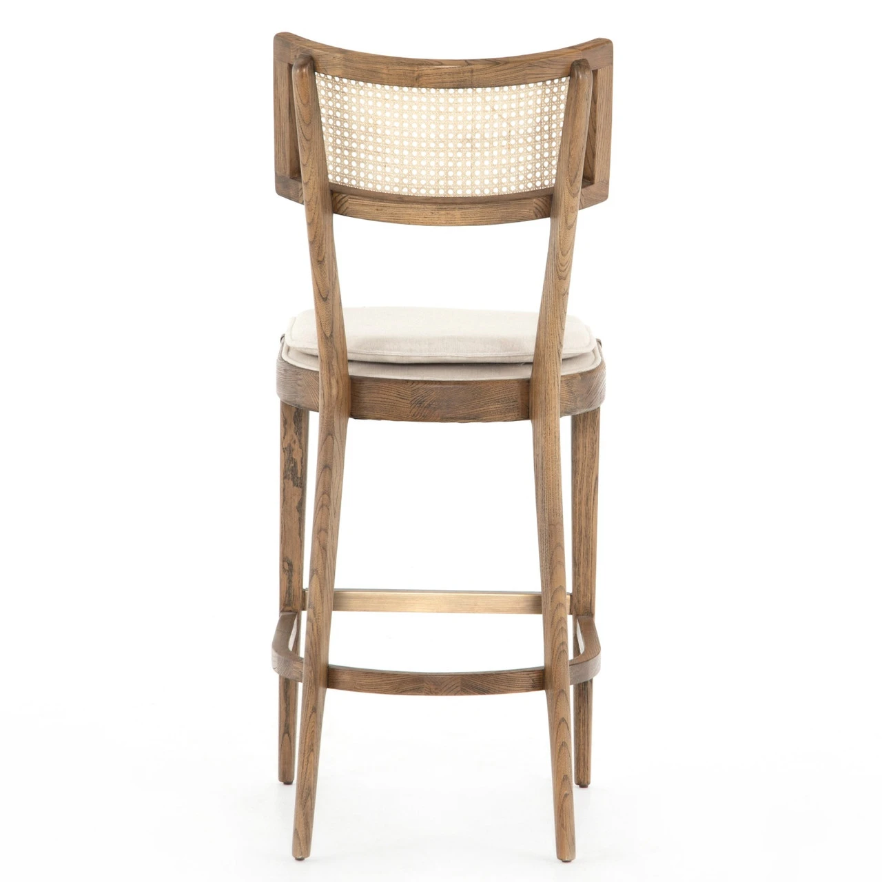 Mixed materials refresh retro styling. Light-toasted nettlewood frames a textural inlay of natural can for a beautifully monochromatic look Light, linen-blend seating of high-performance fabric brings modern sensibility to bar styling.