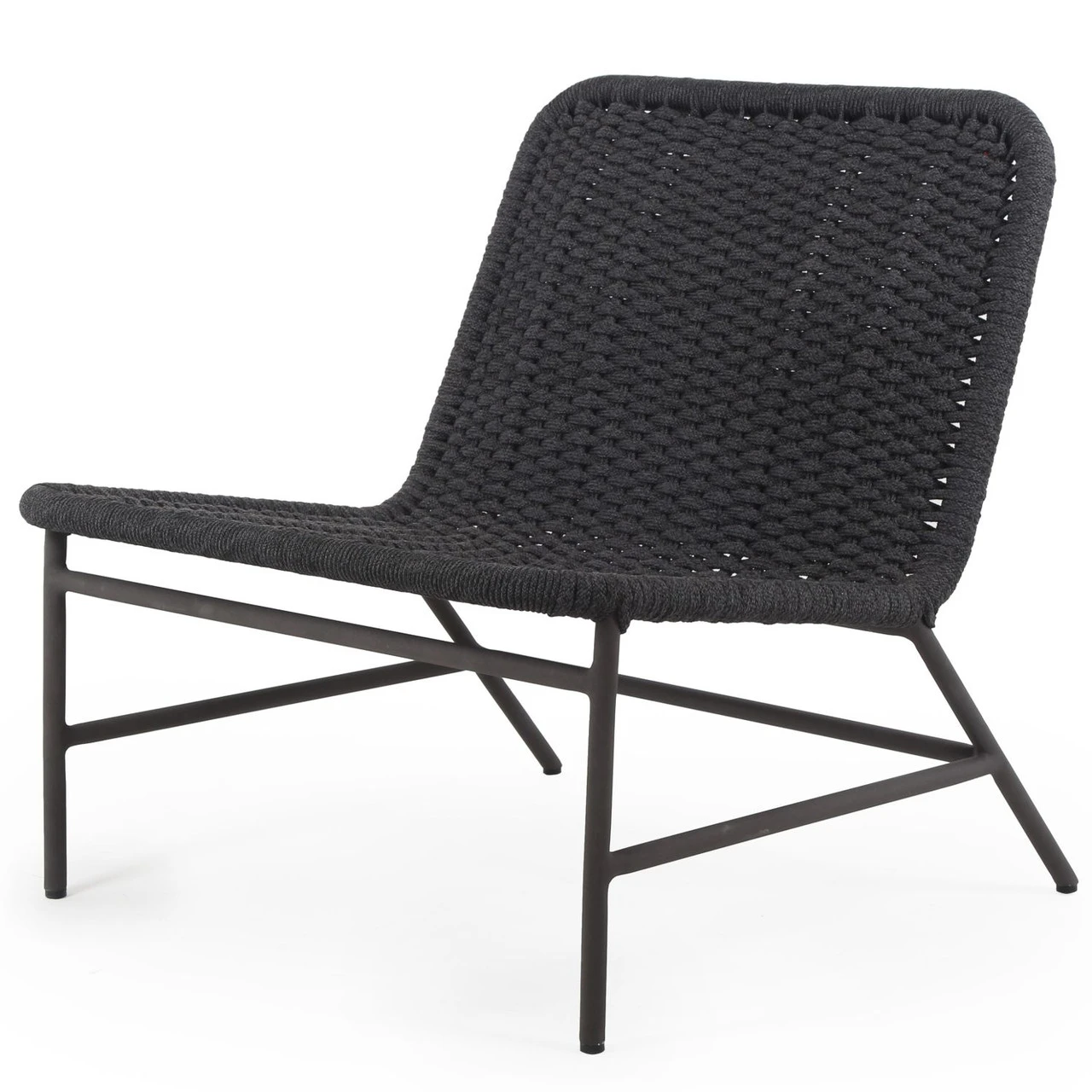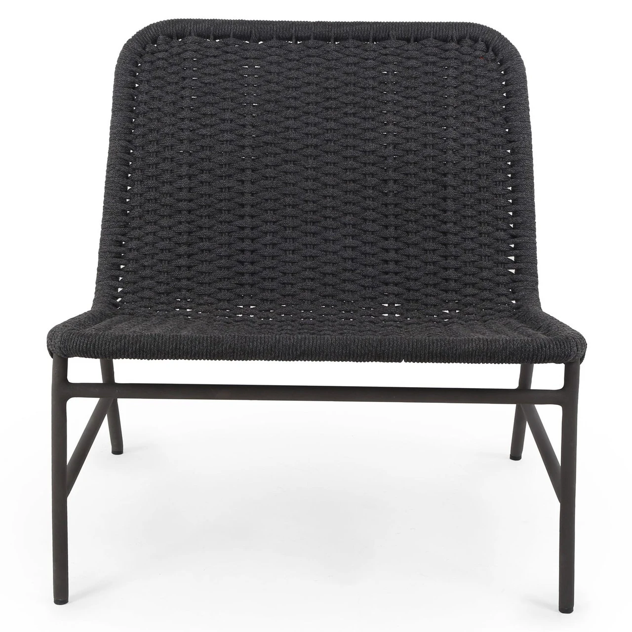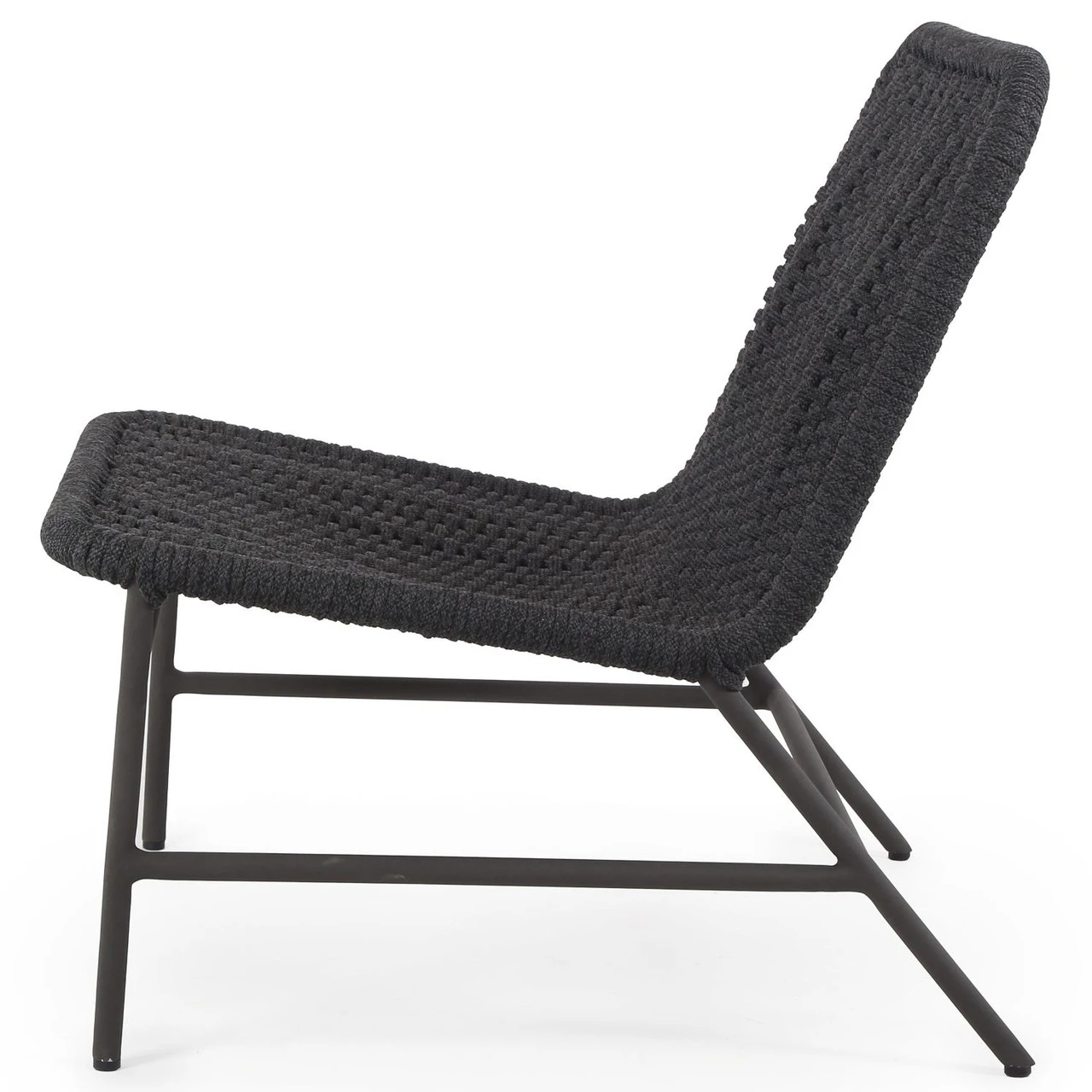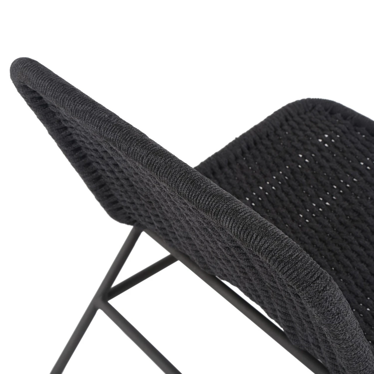 A simple, textural take on outdoor-friendly seating. Black-finished aluminum armless framing welcomes dark grey rope, for a sleek look with underlying depth. Cover or store indoors during inclement weather and when not in use.