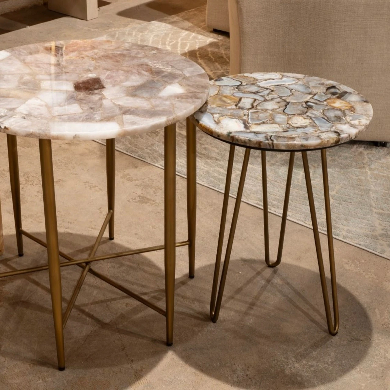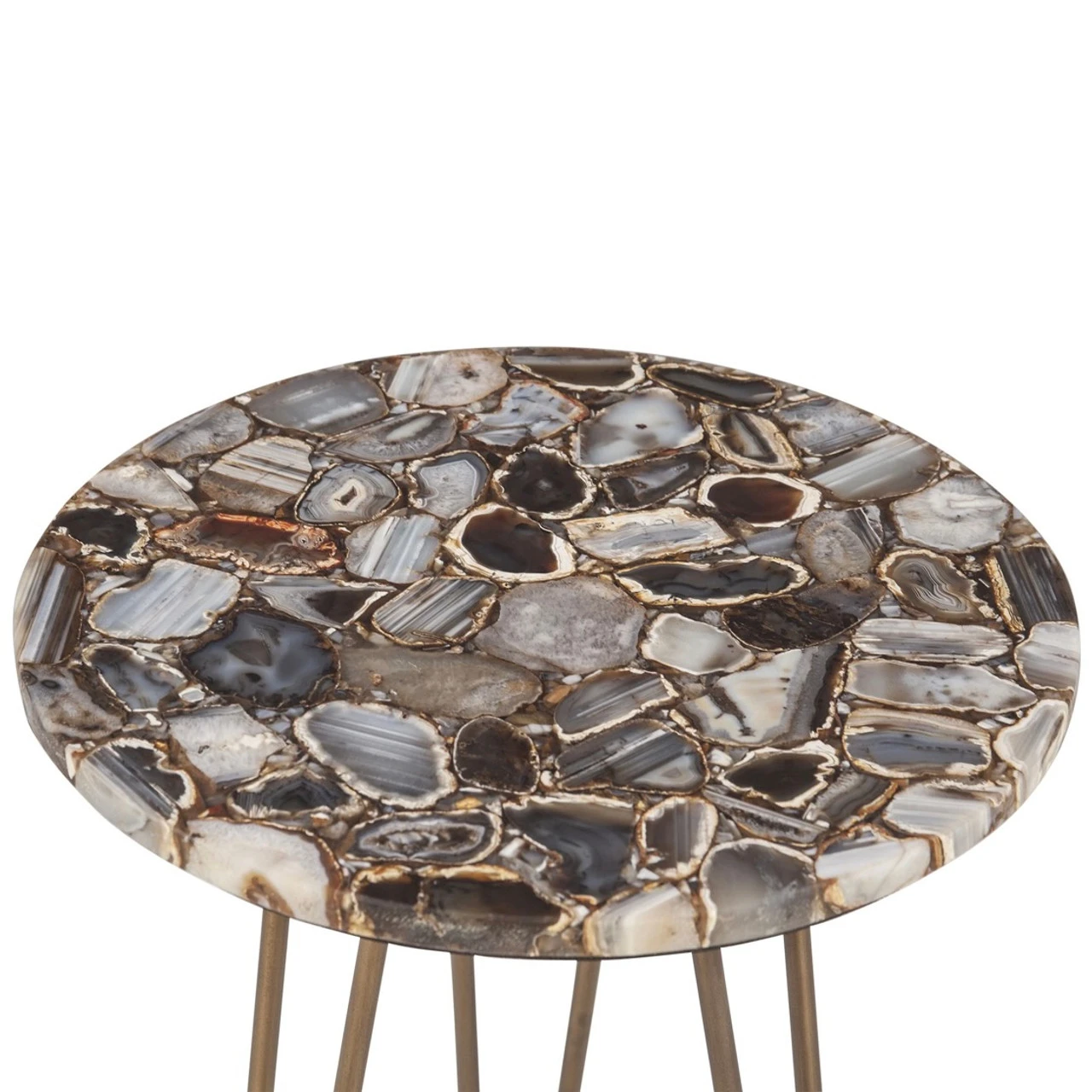 Explore the wonders of the Calico Collection with our Calico 17″ Side Table in Stone Agate with Iron Base. This table is a stunning addition to any space. Immerse yourself in the allure of eclectic design as traditional craftsmanship merges seamlessly with modern sensibilities, inviting you to embrace the beauty of cultural fusion in your home.