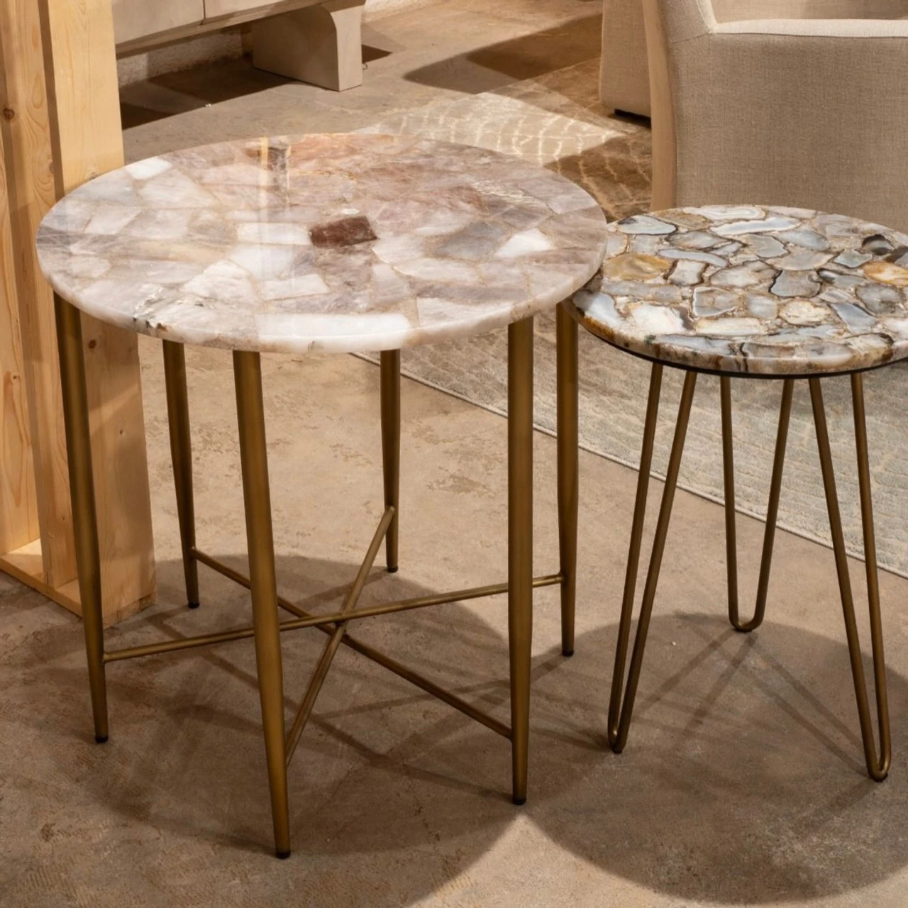 Explore the wonders of the Calico Collection with our Calico 24″ Side Table in Smoky Quartz with Iron Base. This table is a stunning addition to any space. Immerse yourself in the allure of eclectic design as traditional craftsmanship merges seamlessly with modern sensibilities, inviting you to embrace the beauty of cultural fusion in your home.