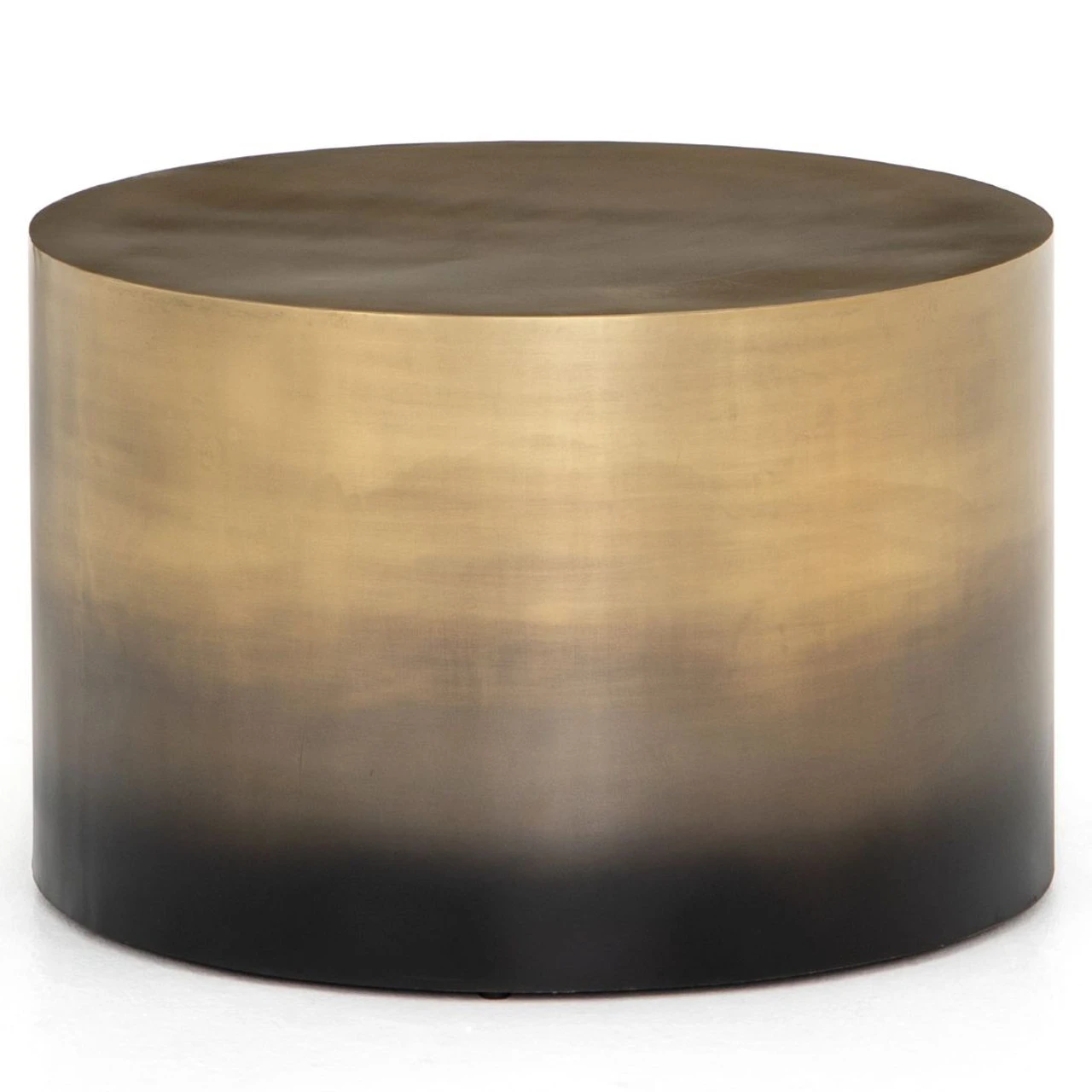 An antique brass finish highlights iron’s gradual blending of hues, delivering a distinctive ombre effect to the rounded bunching table. Perfect in pairs.