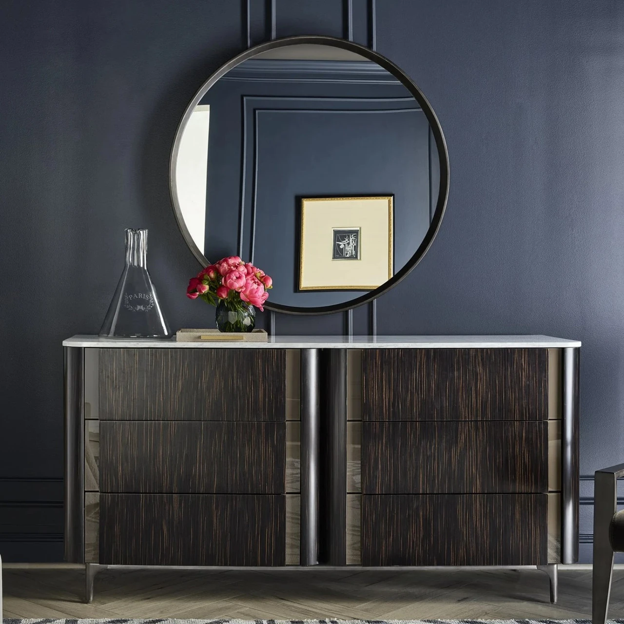 Add reflective appeal to the home with the Cecily Round Mirror, made with a beautiful cut of beveled glass encased by a bronze metal finished frame.