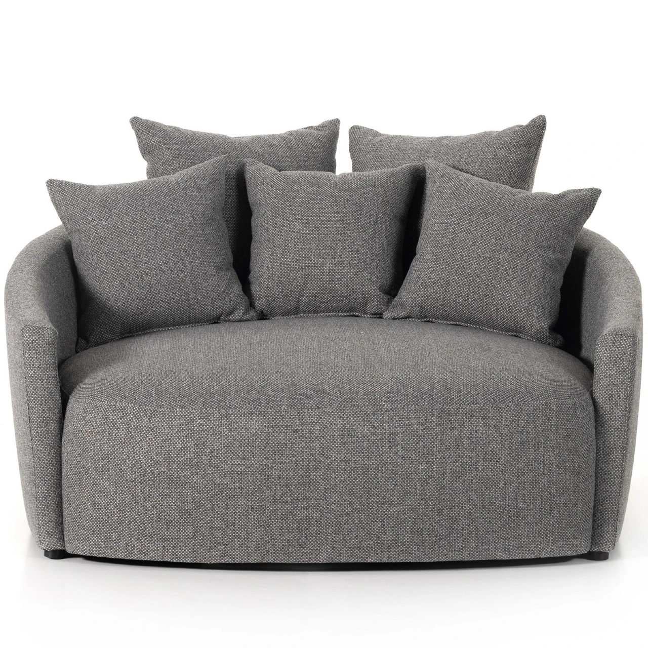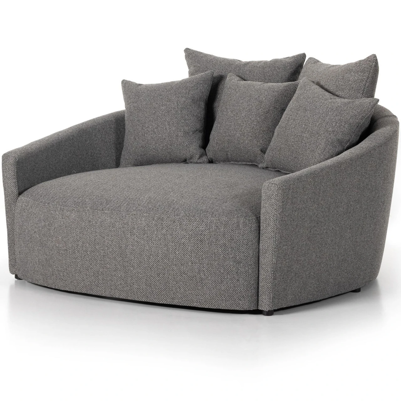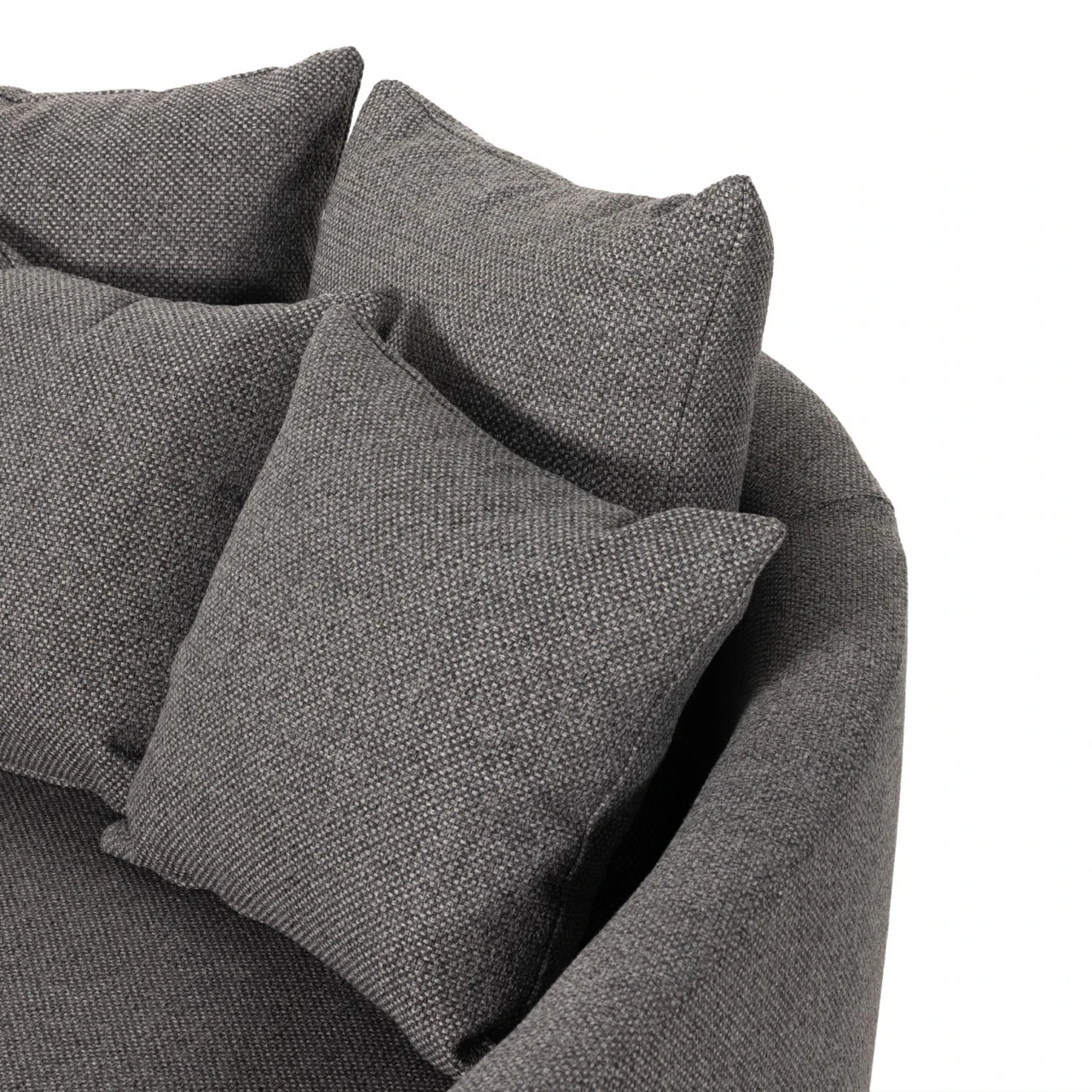 Roomy style. Charcoal upholstery covers a dramatic U shape for a spacious, sink-in sit. Throw pillows present an added touch of comfort to this sensibly styled media lounger, perfect for movie nights.