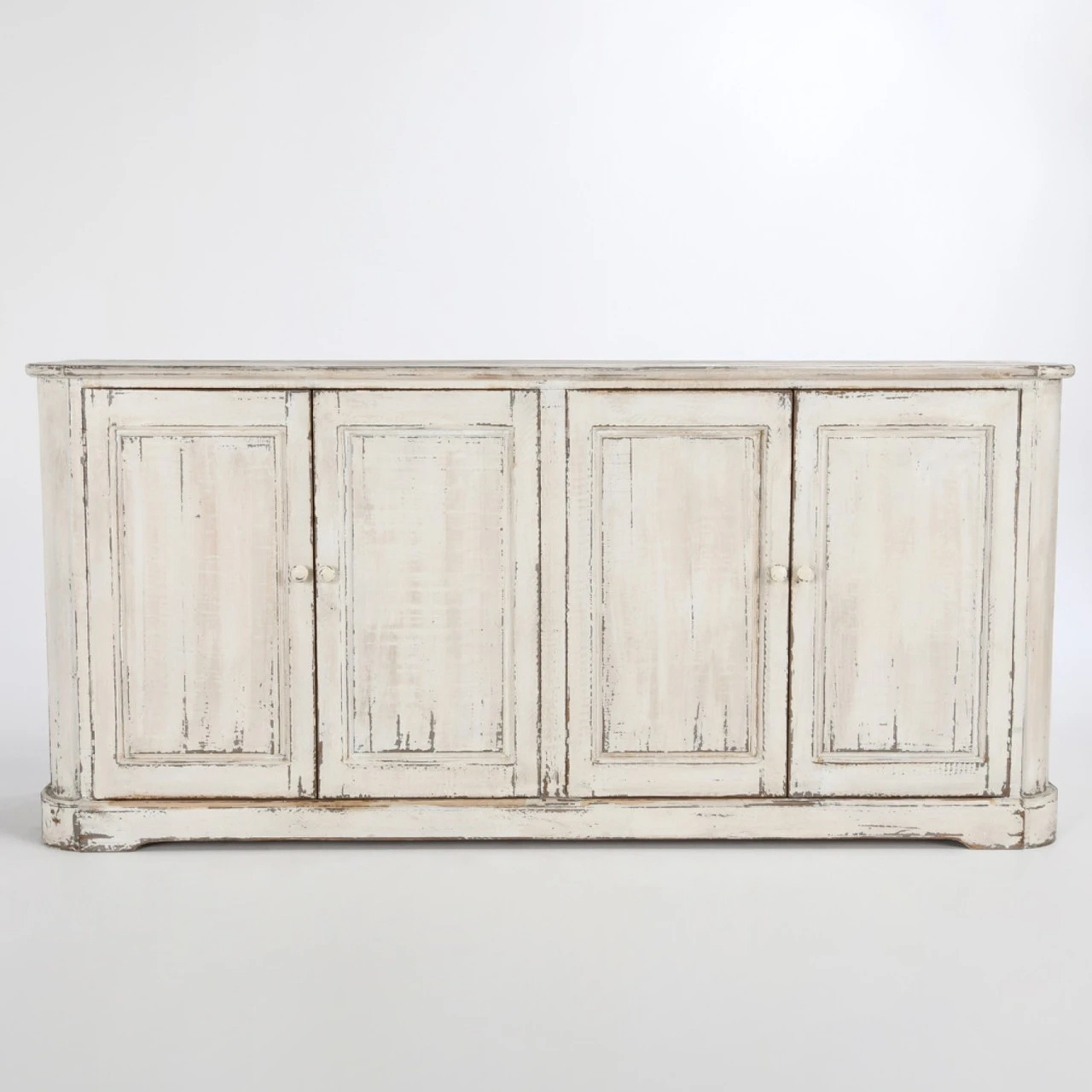 Reclaimed pine wood and an antique finish give this sideboard a timeless, well-loved aesthetic. Solidly constructed, this piece brings versatile storage for any setting. Reclaimed wood lends character with distinctive variations inherent to aged wood.