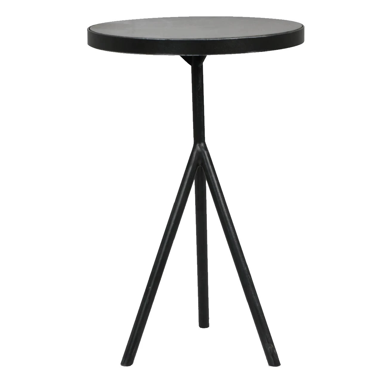 A classic tripod base of powder black-finished iron supports a rounded bluestone top, adding elegance to slim, simple styling. The Corin Tripod Iron Bluestone Top Round End Table a great addition to any living room or bedroom decor.