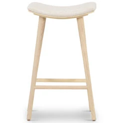 Crescent Wire is a contemporary counter and bar stool with a comfortable upholstered seat and backrest on solid chromed steel wire base. The steel base can be finished with black or white powder coating. Each leg is tipped with a plastic glide embedded into the metal wire. The seat has a steel structure with “S” shape springs for extra flexibility and strength. This steel frame molded by injecting polyurethane foam. Crescent seat is upholstered with a removable zipper enclosed leather, PPM, leatherette or wool fabric slip cover.