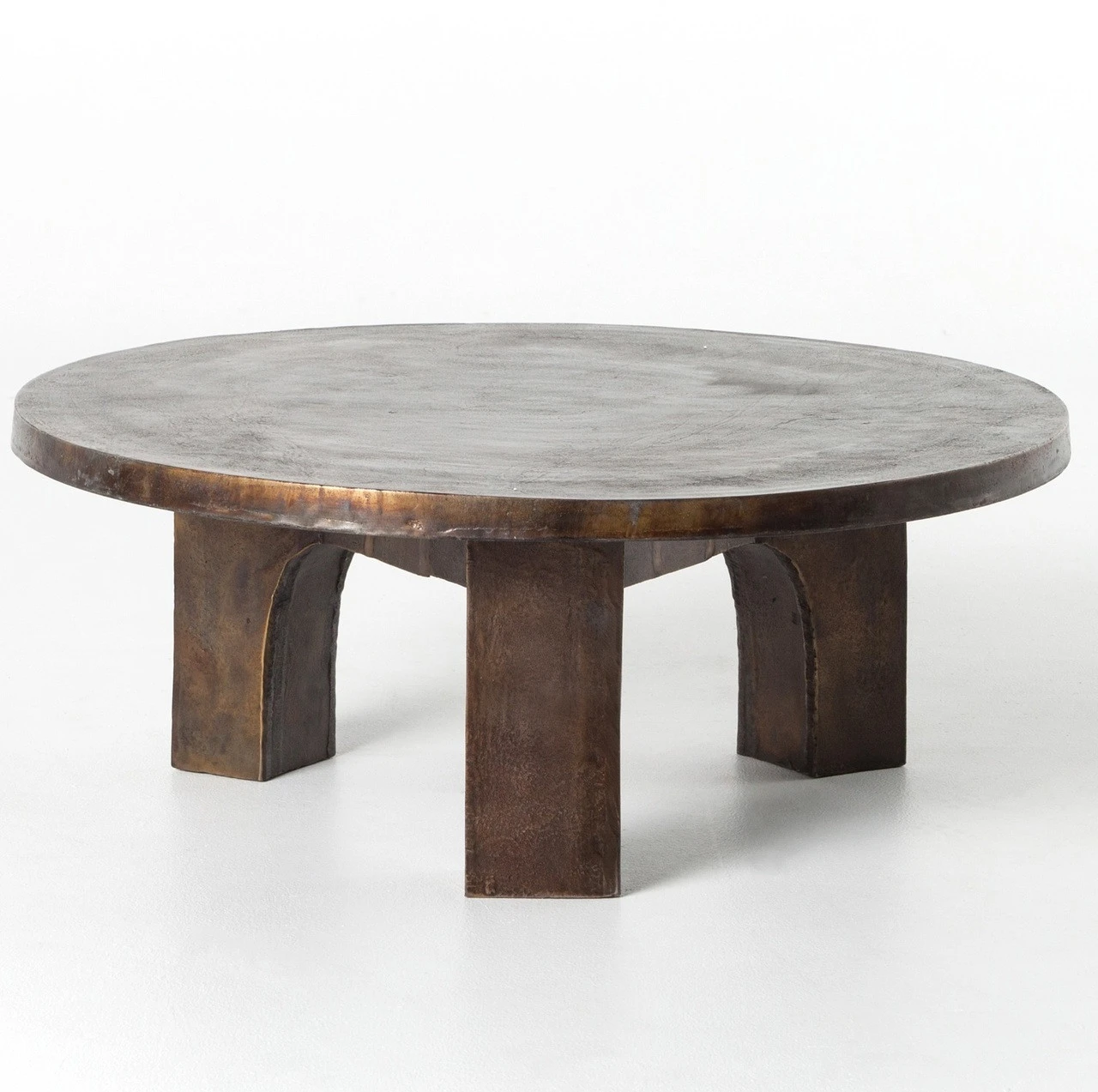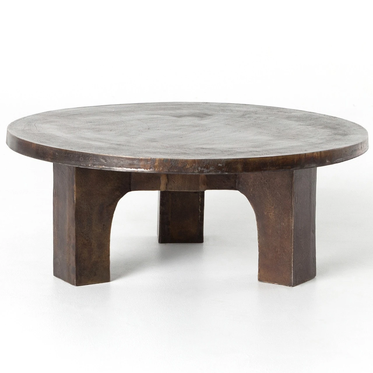 Brutalist-inspired shaping makes a modern statement, indoors or out. Swirls of color play across the antique rust finish, while mixed proportions create a sense movement. Safe for outdoor spaces — cover or store indoors during inclement weather and when not in use.