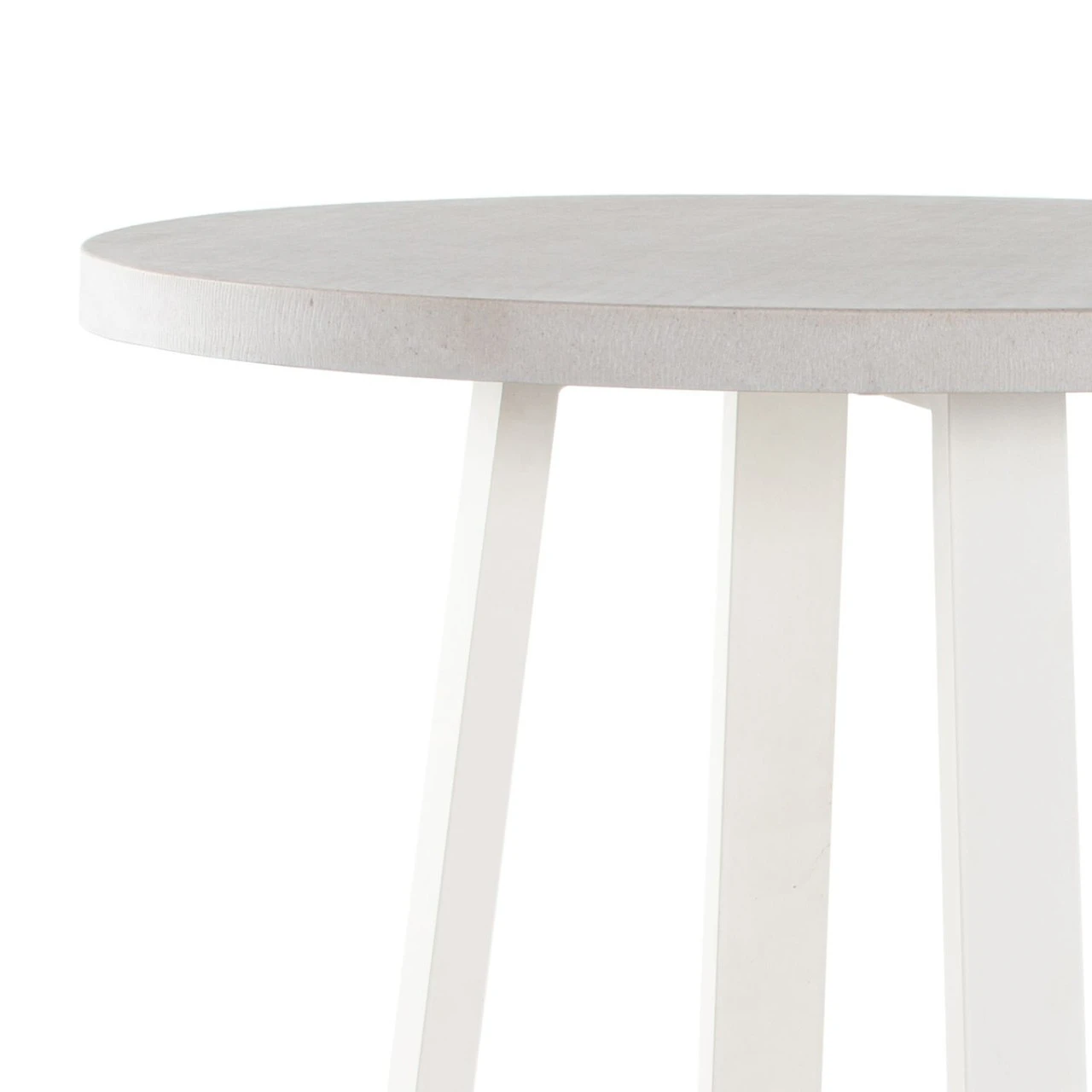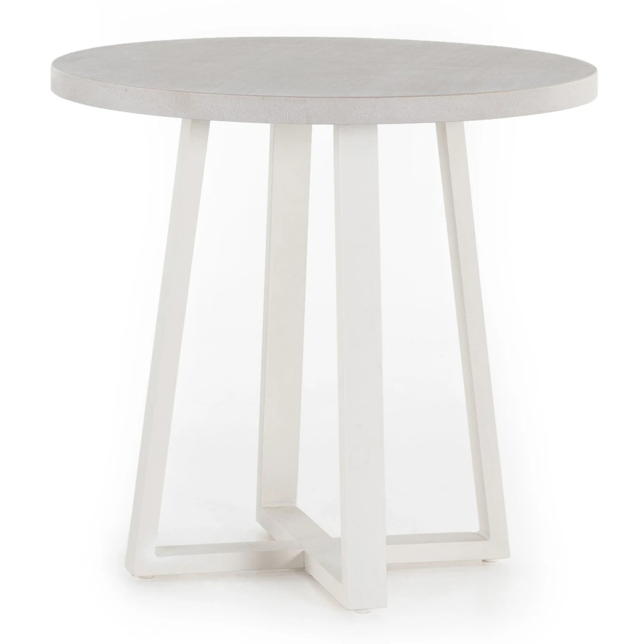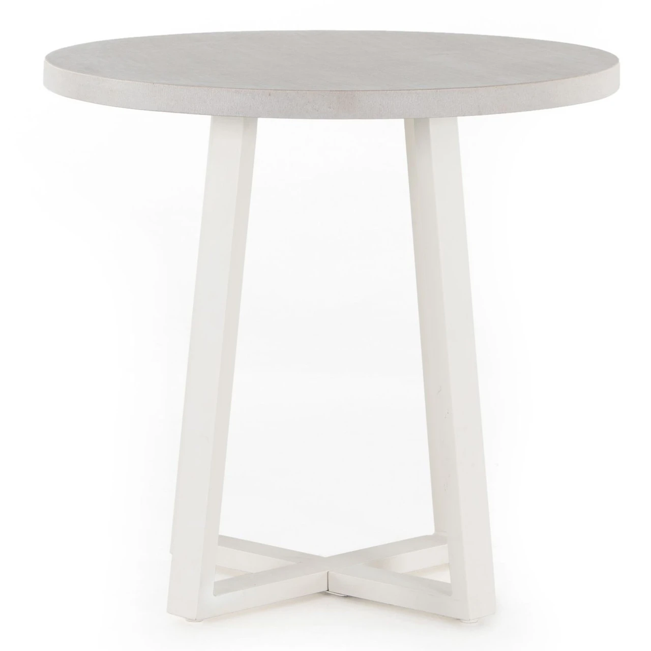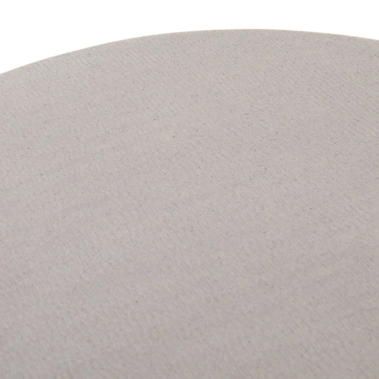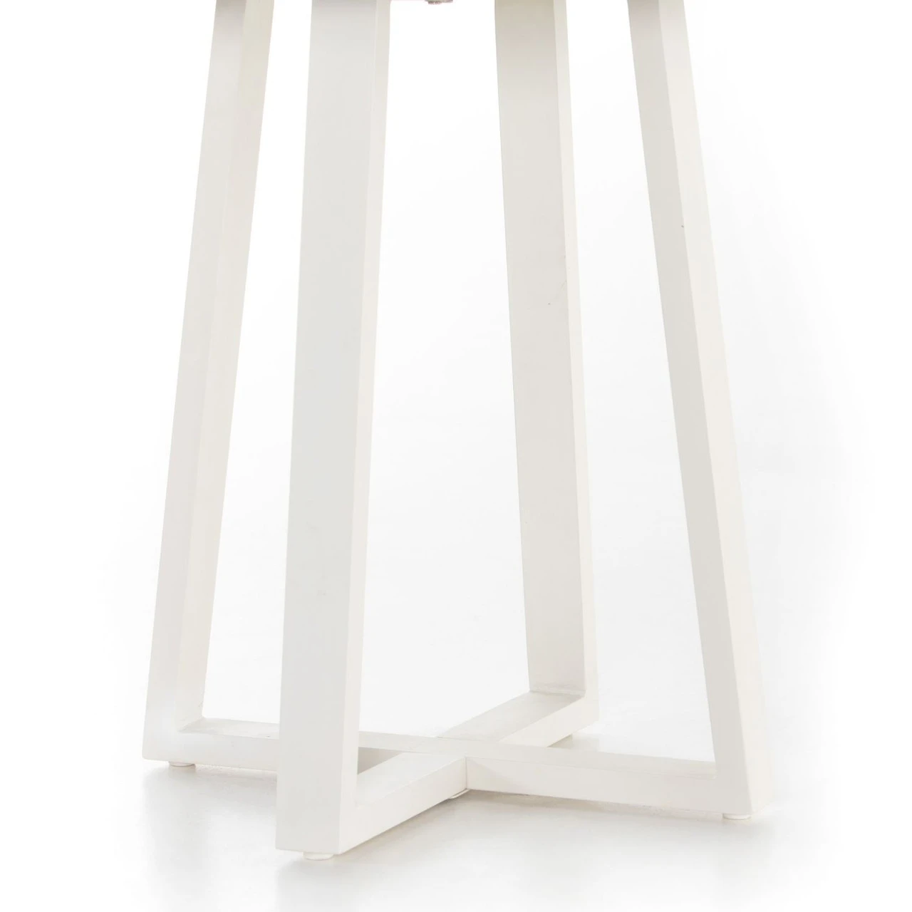 A strikingly simple poly-resin top derived from river sand is polished to a smooth sheen in a neutral oatmeal hue. An angled, off-white iron base adds architectural appeal to this outdoor-friendly dining table. Slight color variance is to be expected, and speaks to lava stone’s organic nature. Perfectly scaled for smaller spaces. Cover or store indoors during inclement weather and when not in use.