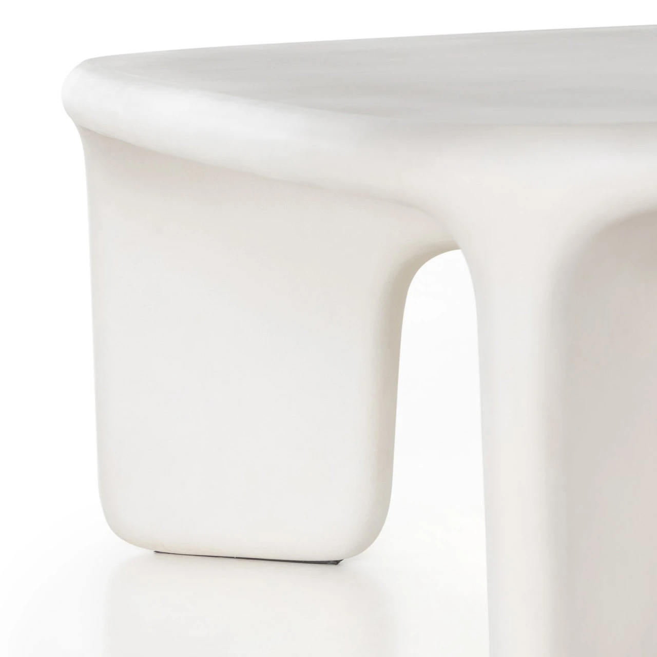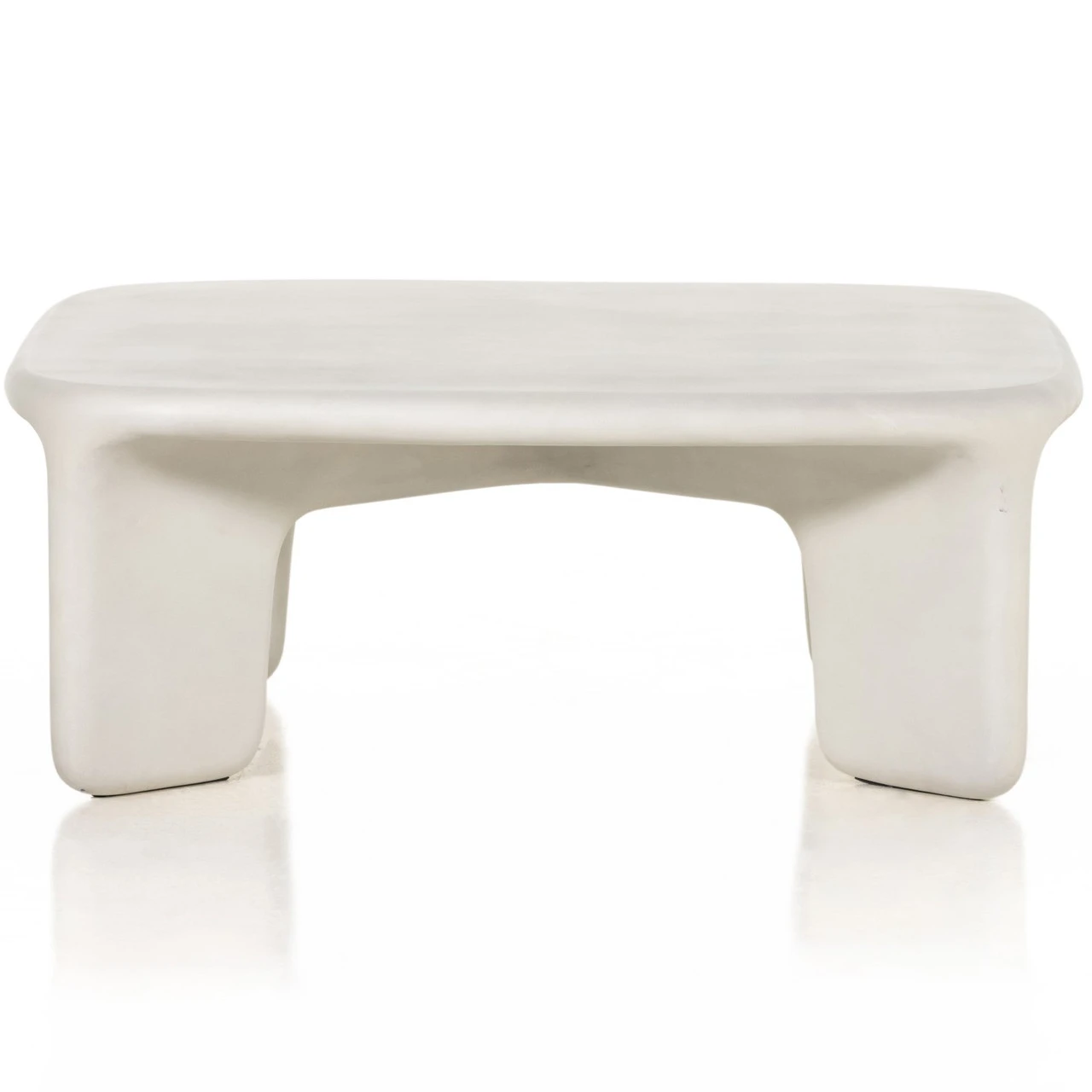 Adobe vibes. Made entirely from white-finished cast concrete, soft, chunky proportions lend a look of depth to this voluminous, uniquely sculpted coffee table.