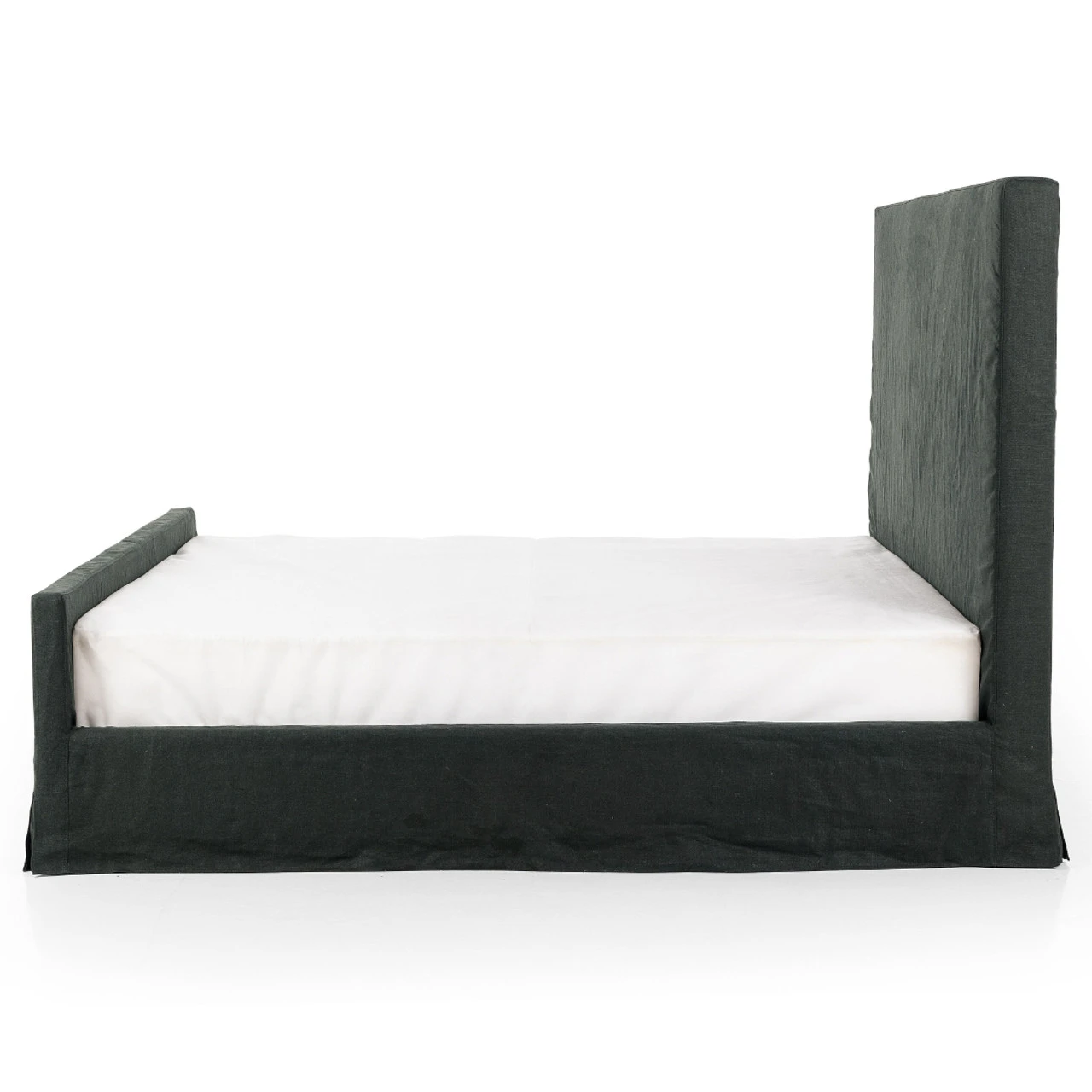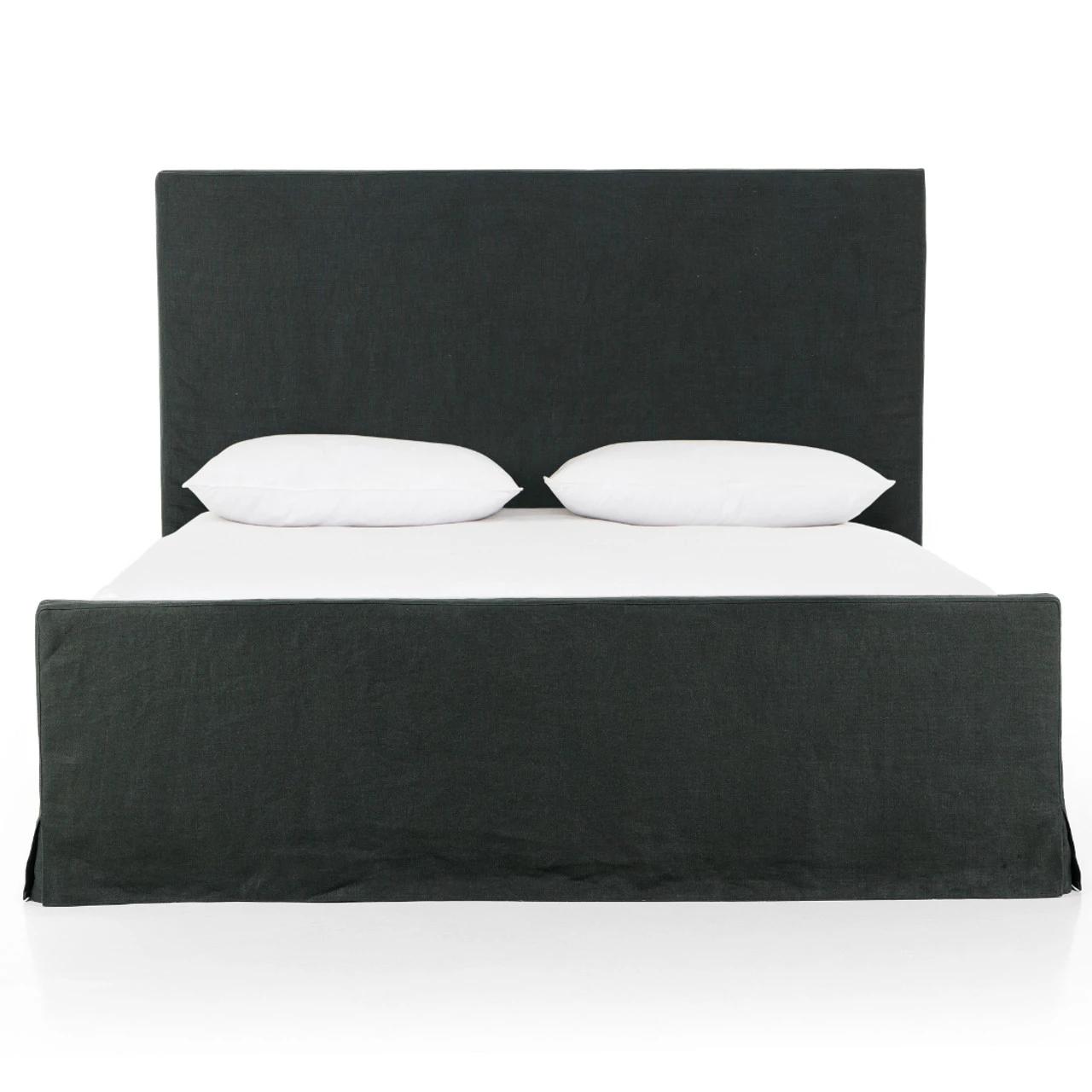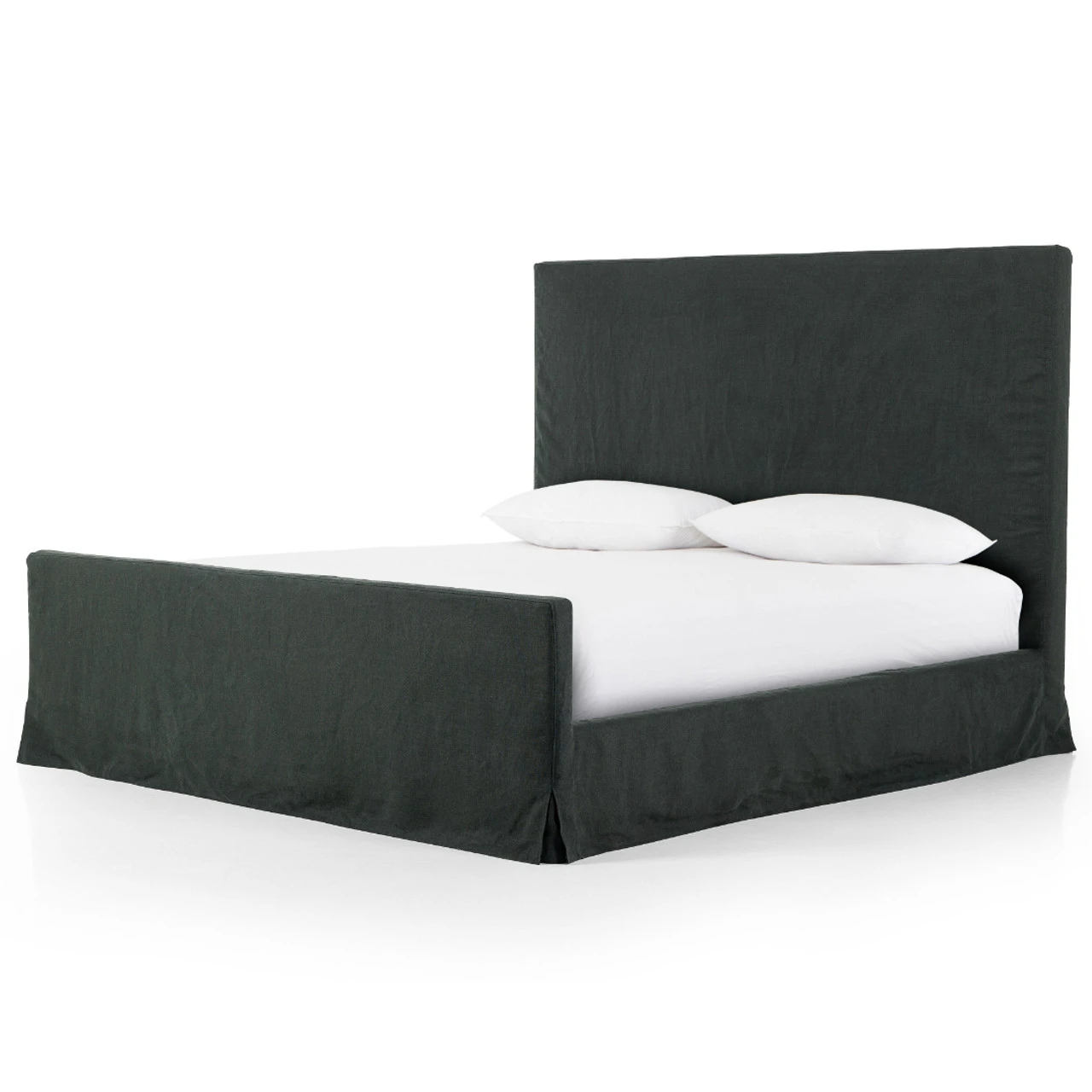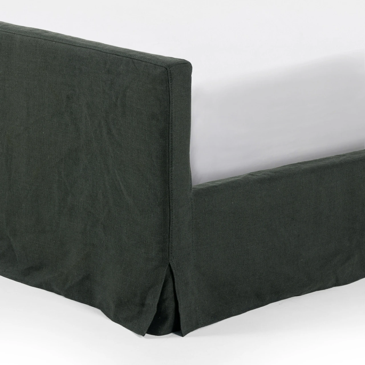 Slipcovered bed upholstered in sustainably made Belgian Linen™. Naturally durable and soft to the touch, Libeco™-sourced linens are artisan-made and free of toxic chemicals. Slipcovered styles are fully removable and machine-washable for easy care.