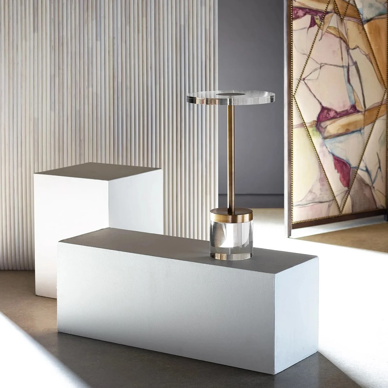 The Deco Martini Table adds absolute indulgence to any living aesthetic, featuring a sophisticated combination of acrylic and gold metal paired within a perfectly simple silhouette.