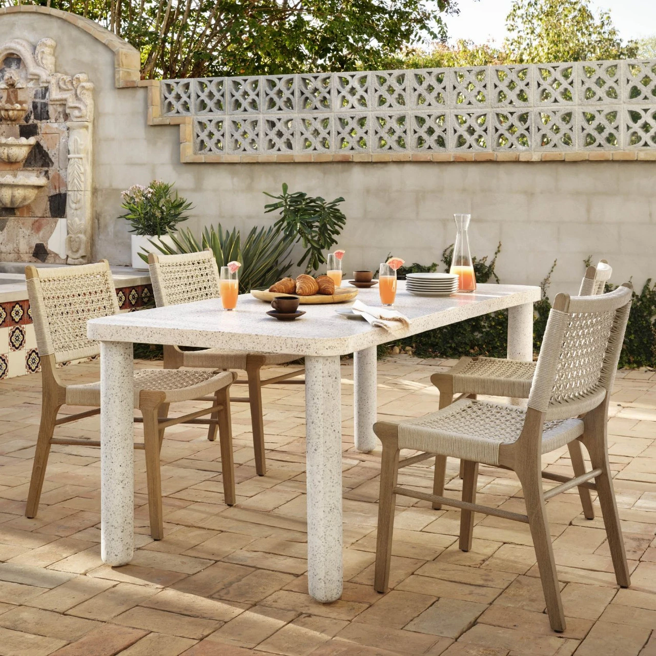 Trend-forward appeal, indoors or out. UV-resistant and water-repellant fabric delivers stylish durability to outdoor-friendly teak, metal and rope-based designs. Clean lines, X frames and palatable neutral tones boost the versatility of living and dining styles, with a mix of natural and FSC®-certified materials standing front and center.