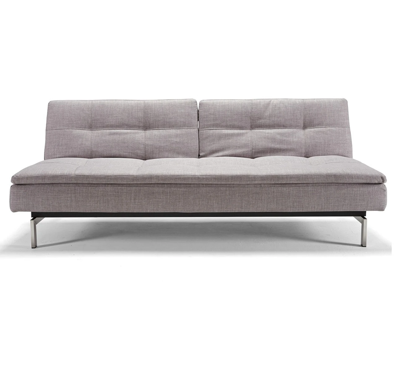 Danish multifunctional design for stylish living in small spaces for guest rooms, small apartments or living rooms. The Modern Dublexo Deluxe Multifunctional sleeper sofa is a compact, modern sofa with an understated, durable design. This simple, versatile modern sofa bed comes in your choice of two upholstery. Choose between legs in stainless steel or wood. The sofa back is split into two separately reclining halves, with two recline settings to open up new seating or sleeping possibilities. This convertible upholstered sofa is 40″ wide when fully reclined with 7″ Innovation Icomfort mattress. Match it up with our Dublexo Deluxe Lounge Chair to create modular sleeper sofa.