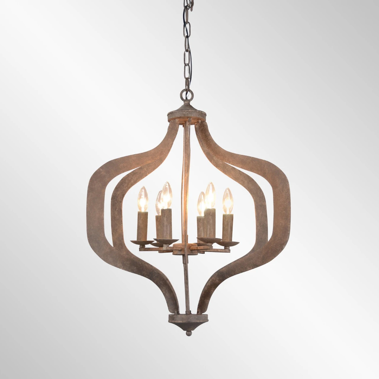Stencil cut iron creates a candelabra-style chandelier holding six bulbs. With its worn finish and classic simplicity, this piece brightens any space with an antique look that transcends trends to be timelessly elegant. Bulbs not included.
