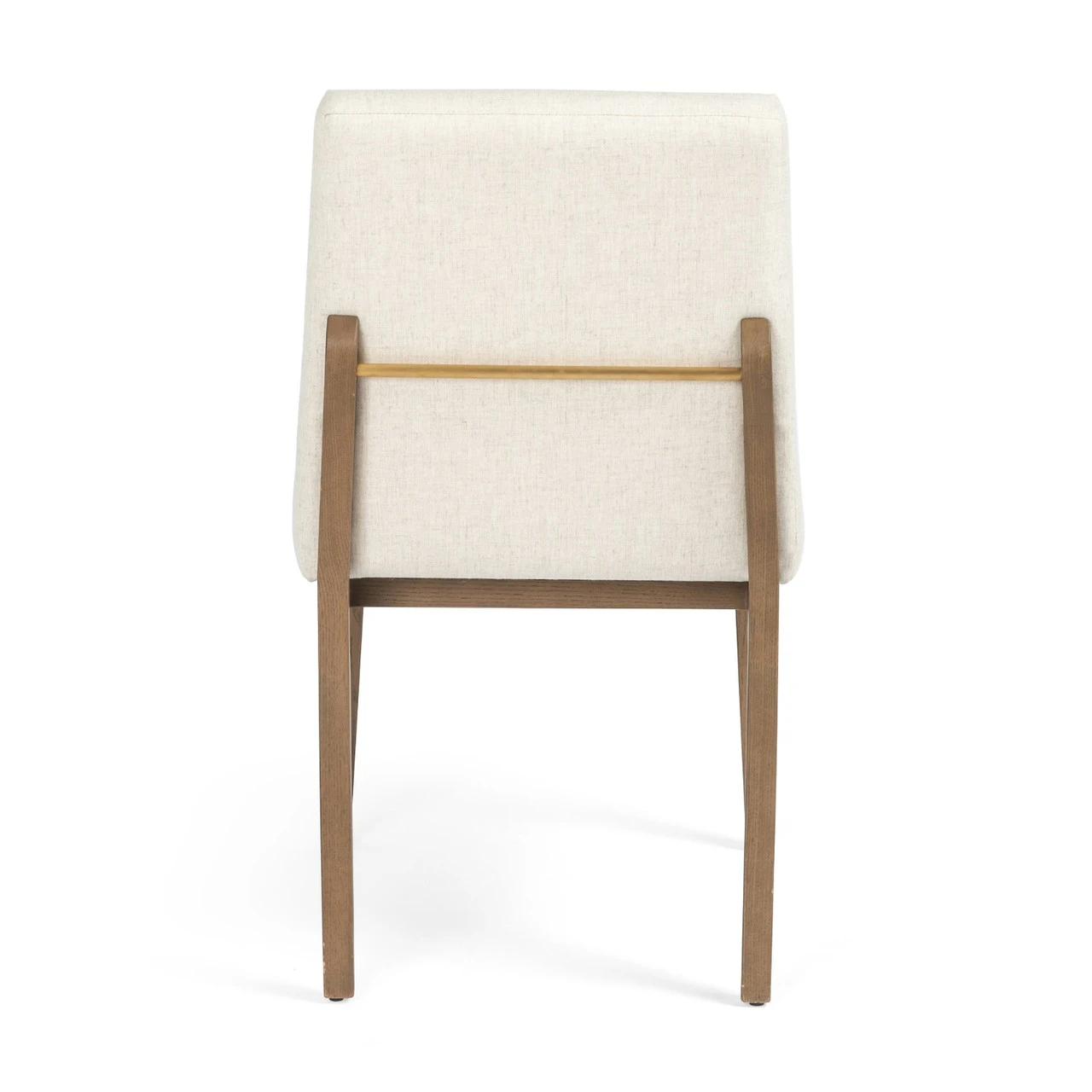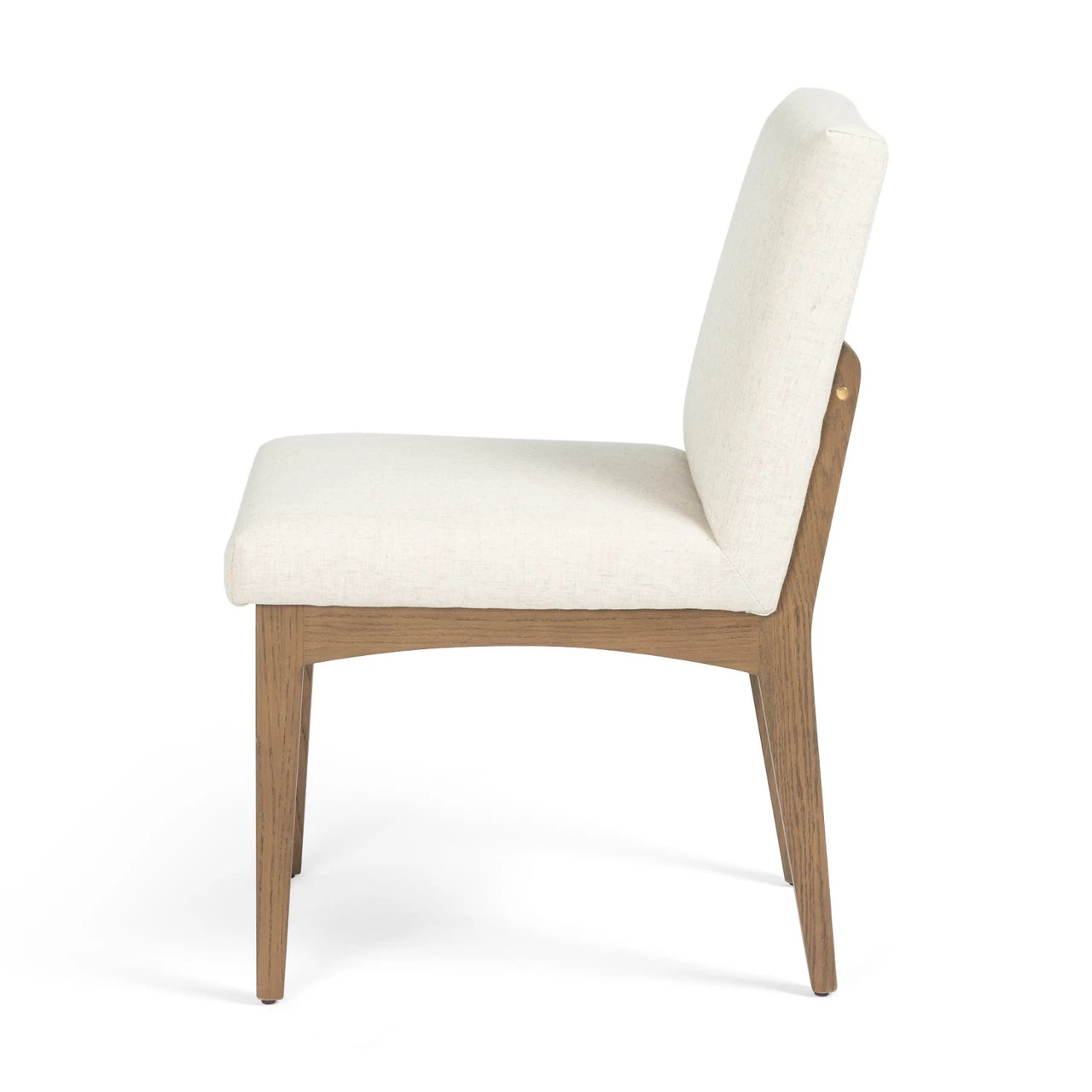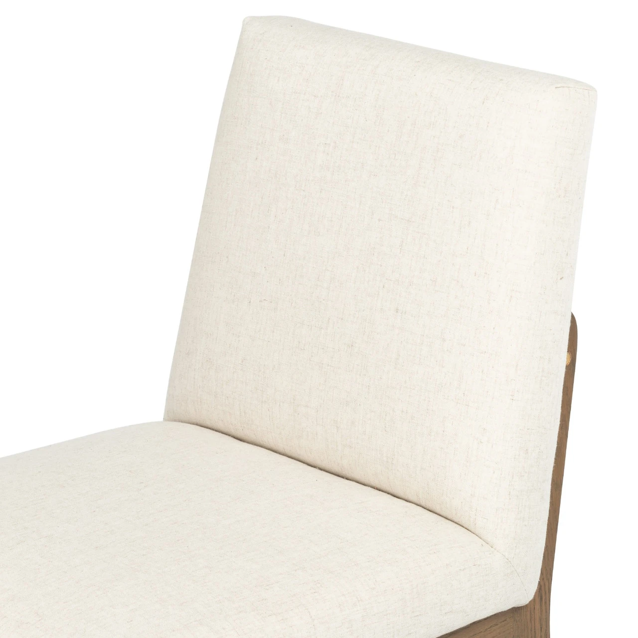 A finely tailored take on dining. Armless honey-colored oak frames performance-grade upholstered seating in an invitingly neutral off white.
