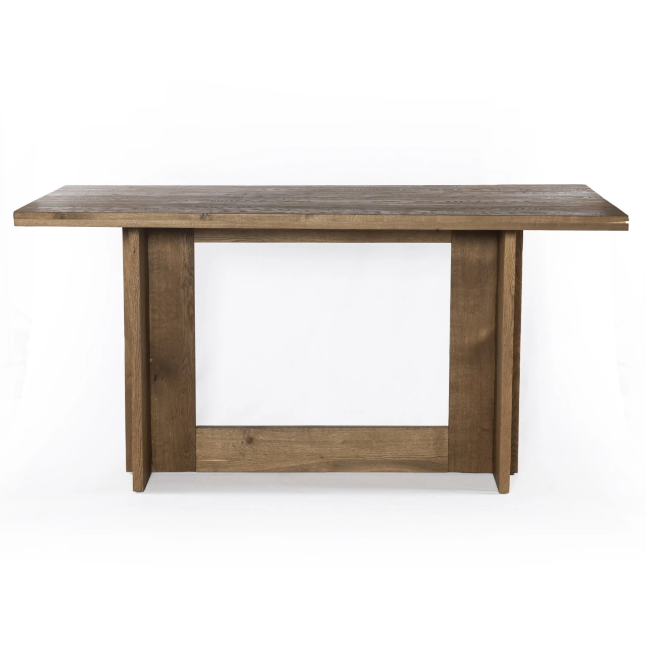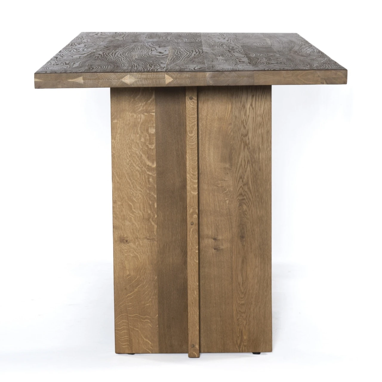 Dark-smoked oak wood forms clean, structured lines, crafting the finest of counter tables with beautiful rustic undertones. Our Erie Oak Wood Modern Trestle Counter Height Table will be the center piece in any kitchen
