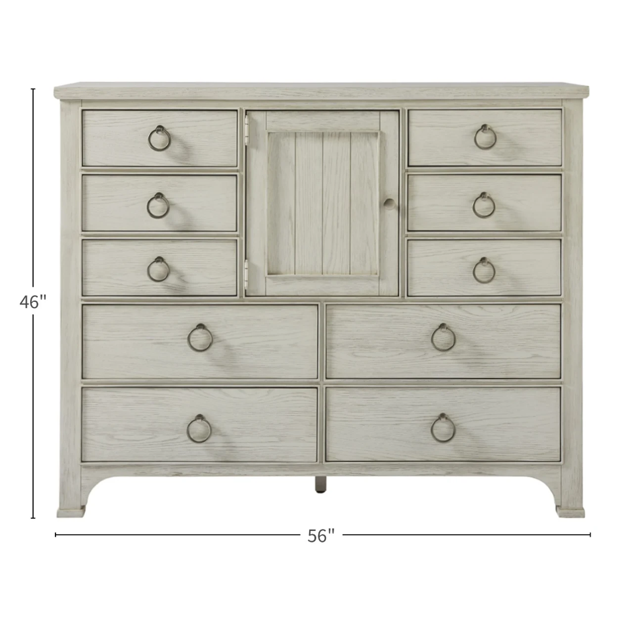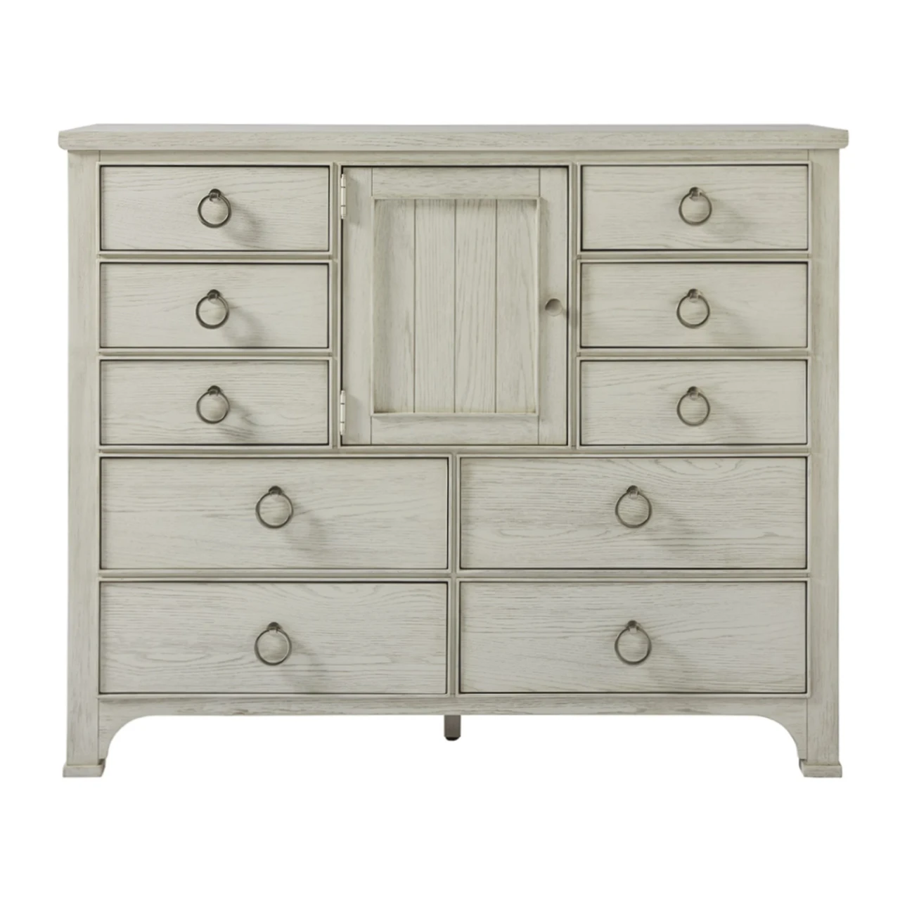 A plank-style center door is neatly framed by ten spacious drawers in the Escape Dressing Chest, a maximum storage solution with playful ring pulls.