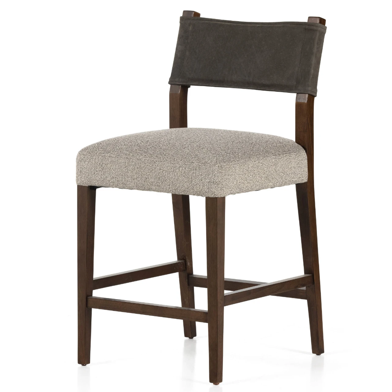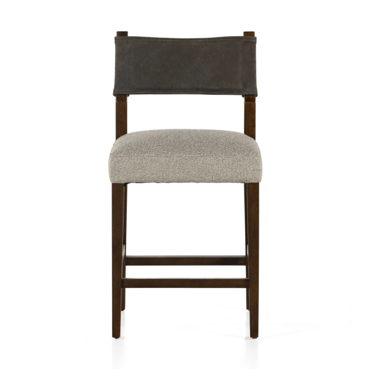 Perfectly sized for the counter, dark-finished parawood frames squared seating of high-performance fabric, with top-grain leather backing. Performance fabrics are specially created to withstand spills, stains, high traffic and wear, ensuring long-term comfort and unmatched durability.