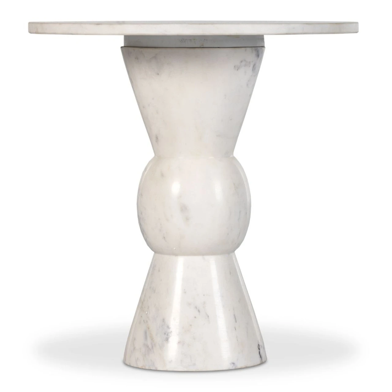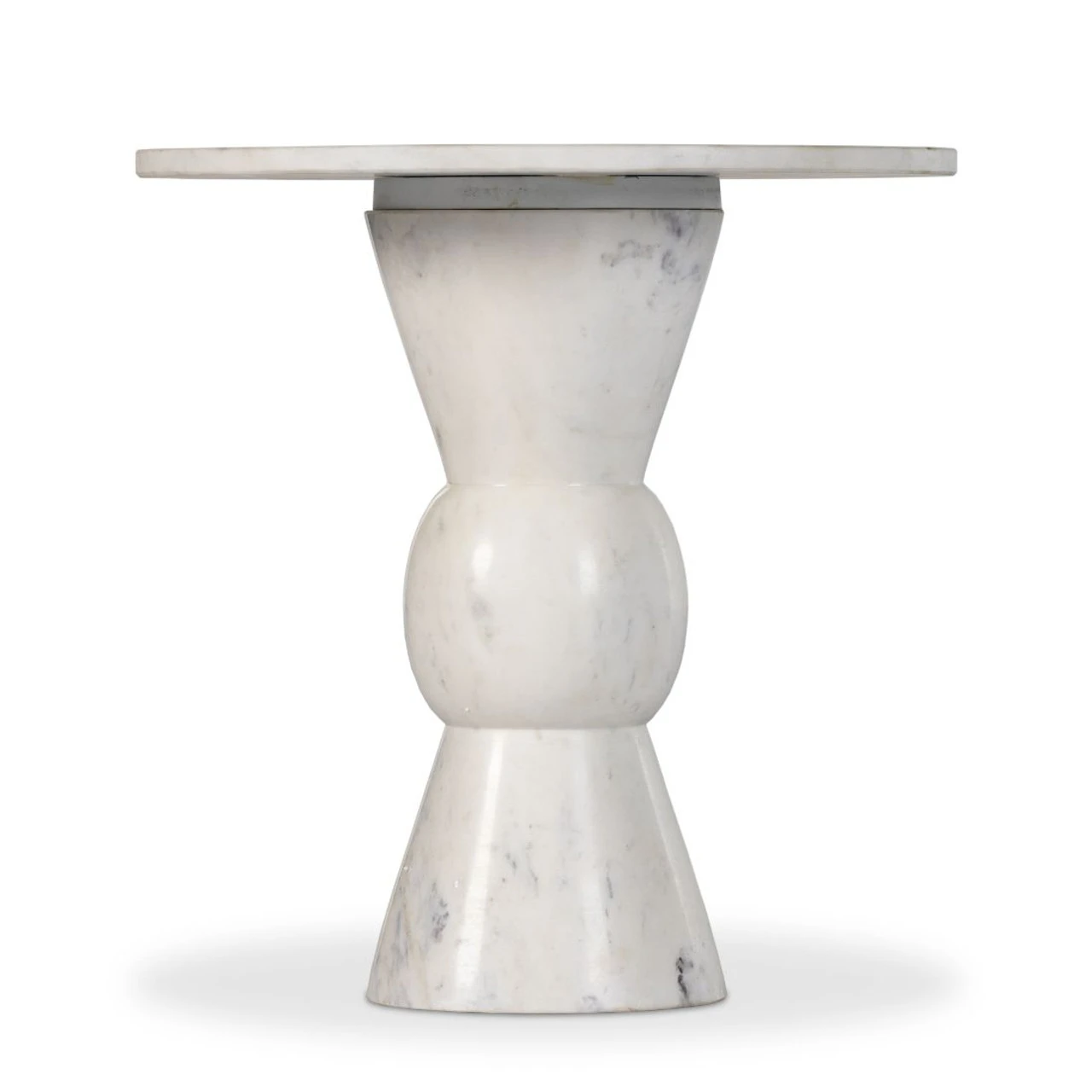 Precise curves with modern presence. Solid white marble is turned and polished, shaping an elegant silhouette. Versatile in size to be styled just about anywhere.