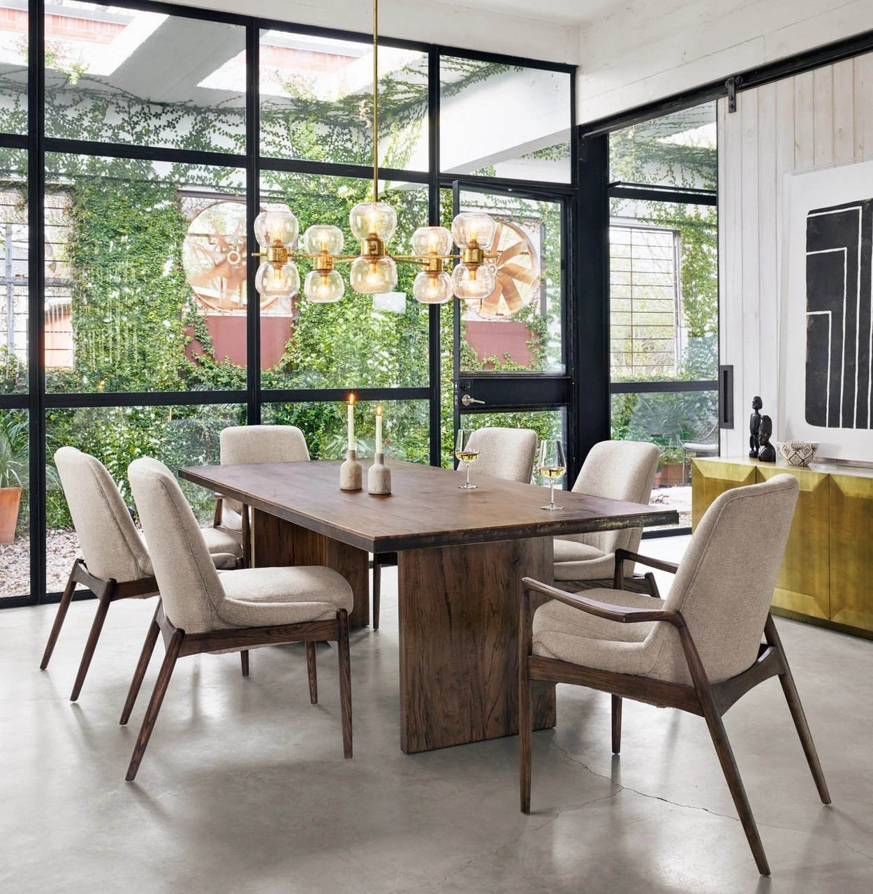 Art and functionality come together in the form of evocative, upcycled furnishings. Tabletops and flat surfaces feature one-of-a-kind antiqued metal patinas. Refurbished steel, cast iron, cogs and footings from old factories or warehouses connect the feeling of each piece back to the original use and origin of the materials.