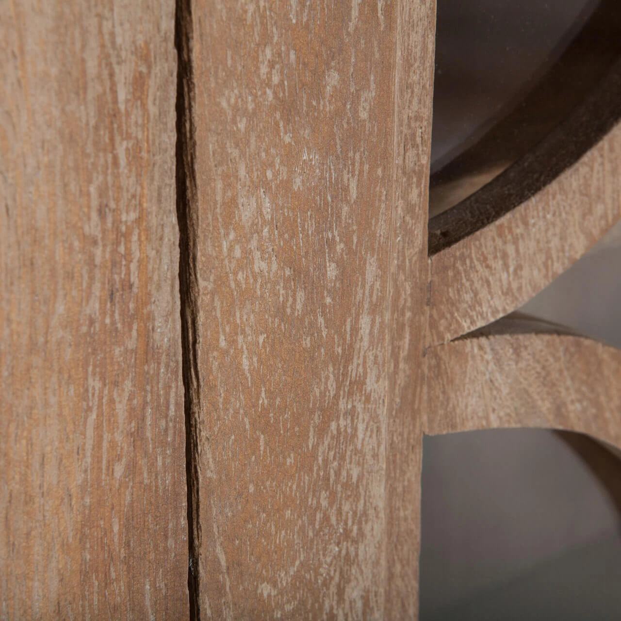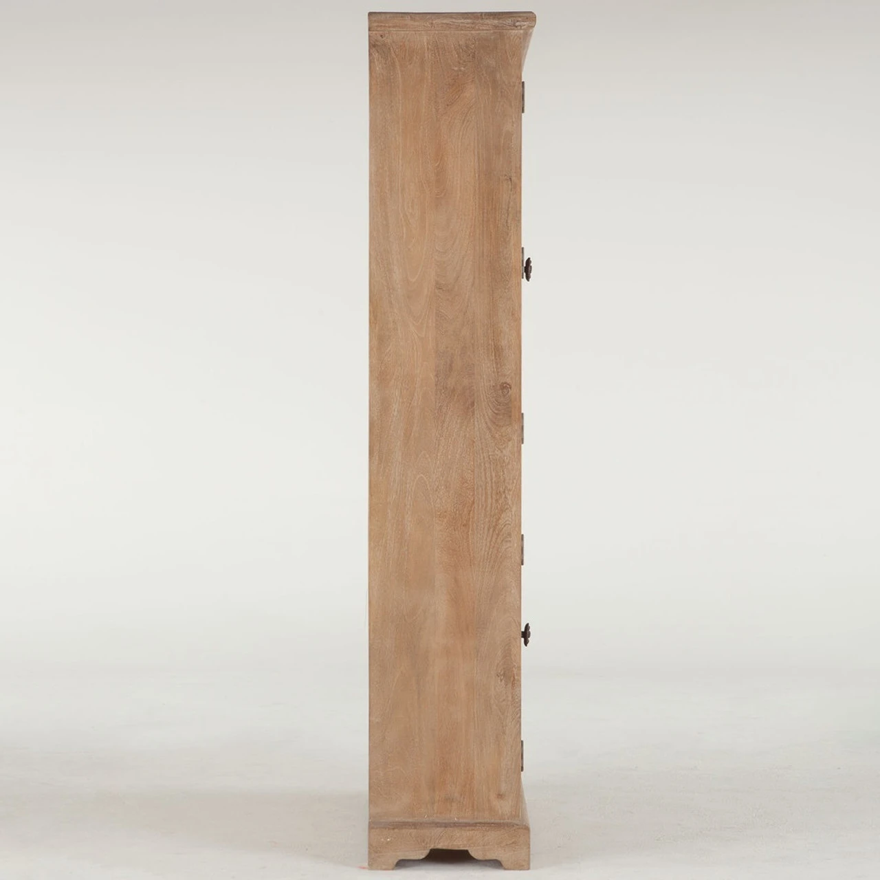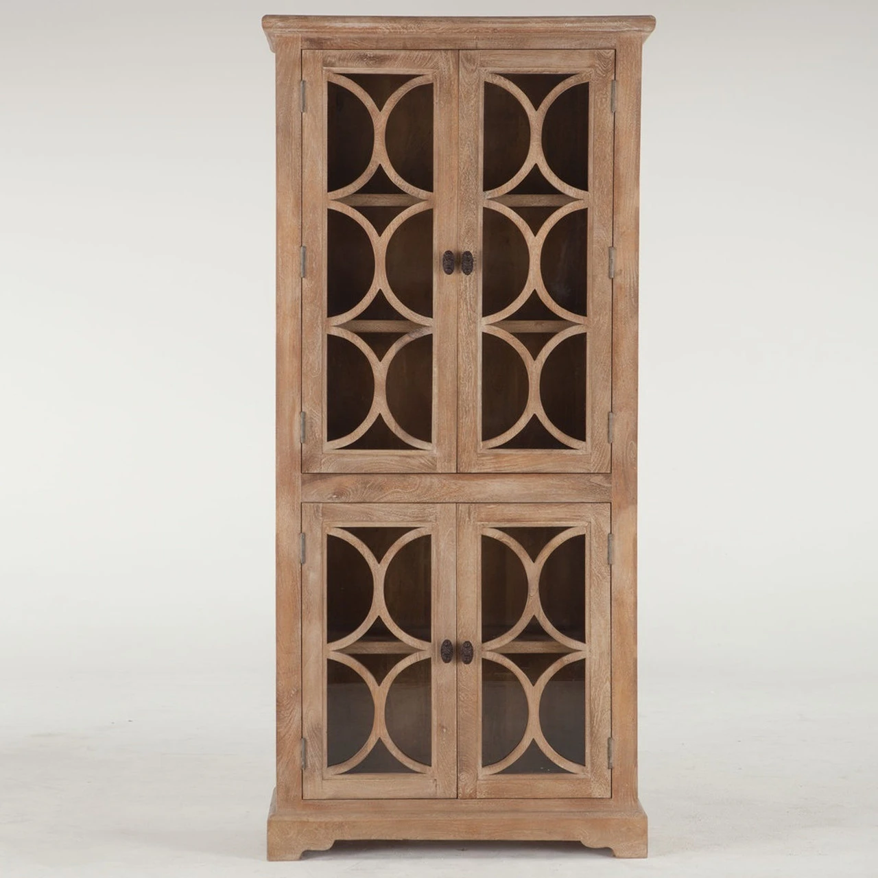 Rustic and elegant, our French Farmhouse Solid Wood 2 Door Display Cabinet takes inspiration from antique china cabinets. Crafted from from solid Mango wood and glass, each display cabinet features frame-and-panel construction, over sized design, carved details and beautiful, antique oak finish. The unique seven-step antiqued oak finish process makes each buffet durable, providing maximum moisture and scratch resistance for many years to come.Â