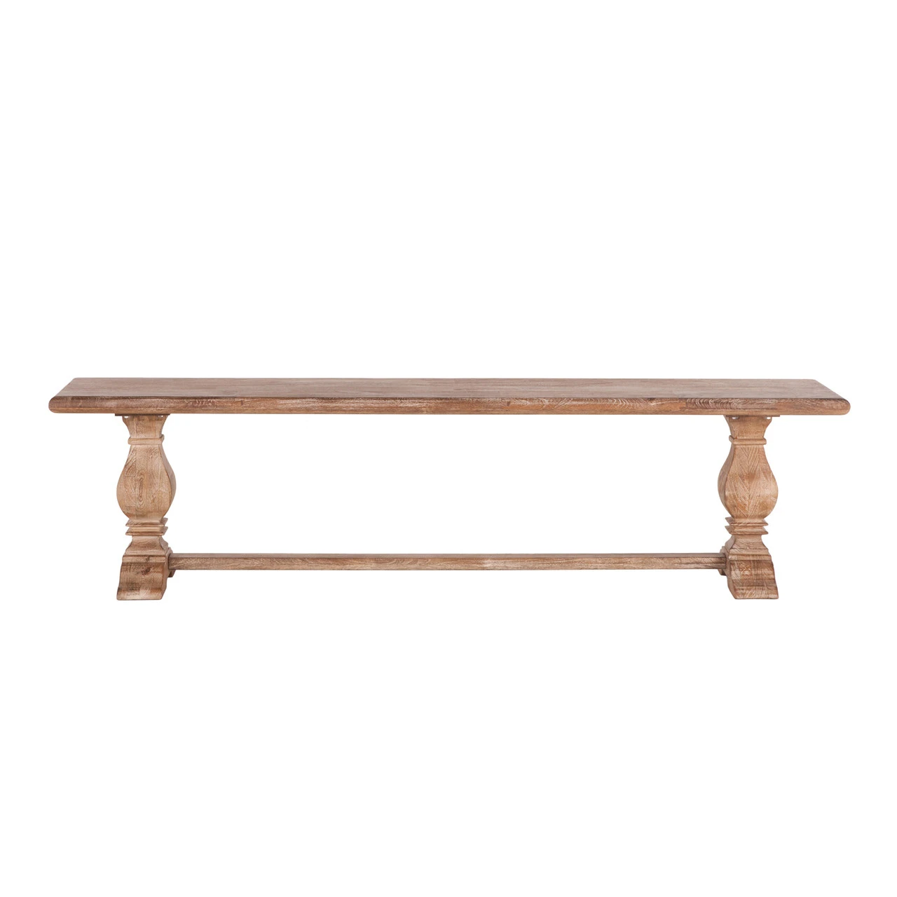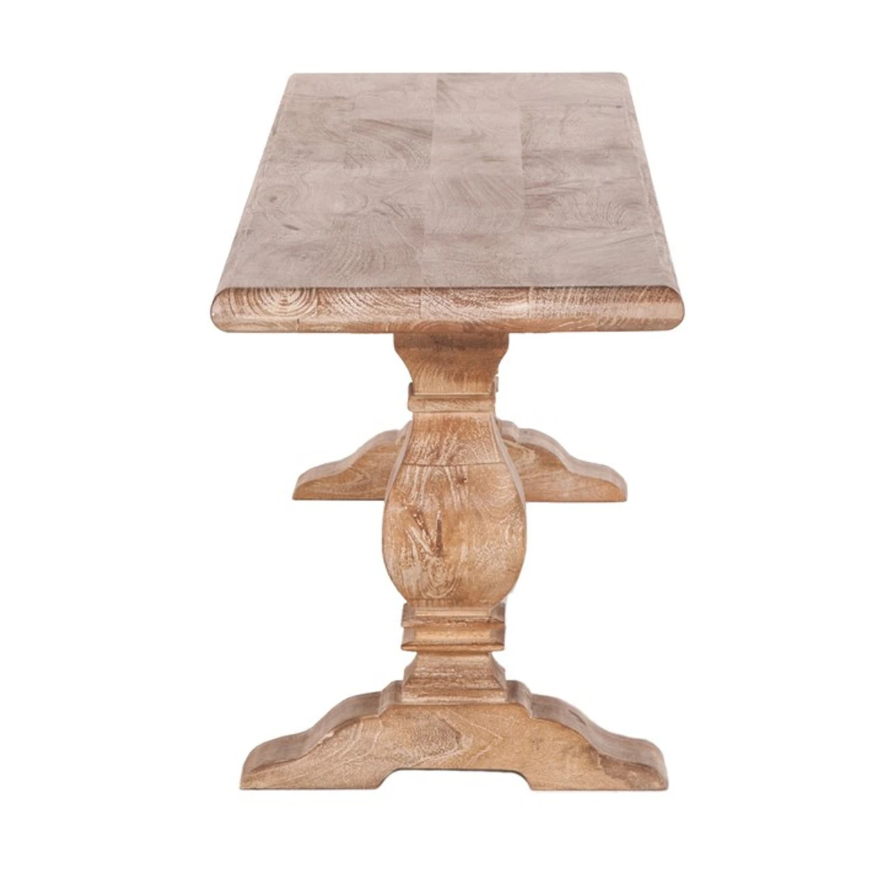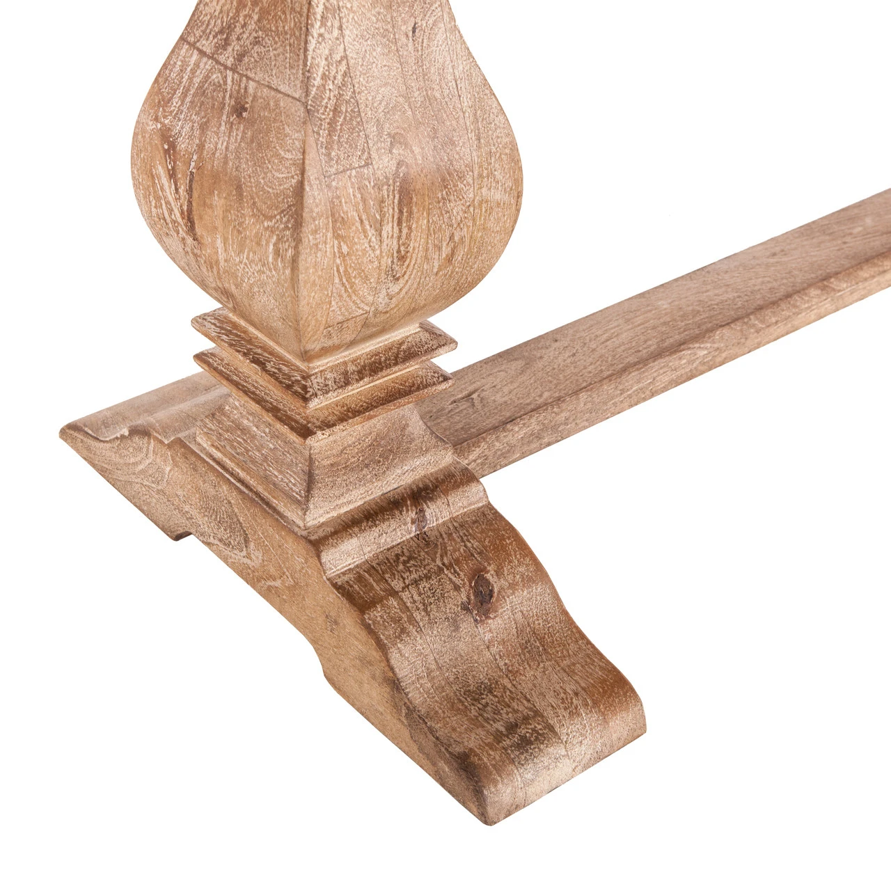 Rustic and elegant, our French Farmhouse Solid Wood Trestle Dining Table Bench takes inspiration from antique Farmhouse tables. Crafted from from solid Mango wood, each trestle table features frame-and-panel construction, over sized design, carved pedestal and beautiful, antique oak finish. The unique seven-step antiqued oak finish process makes each table durable, providing maximum moisture and scratch resistance for many years to come.Â