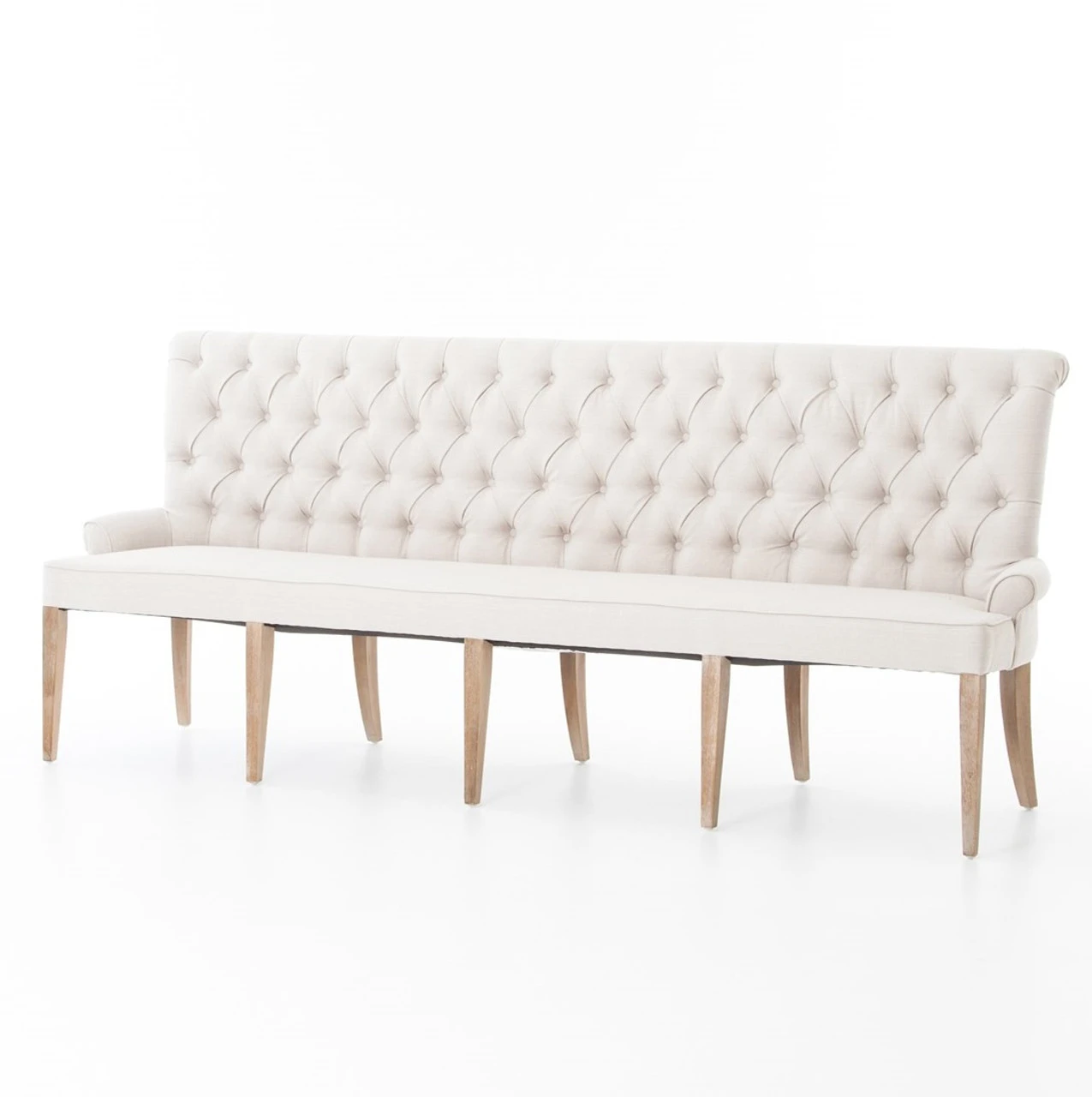 Interesting things can be found in the detail. Combining deep hand tufts with soft curves and splayed legs keep this banquette feeling contemporary. A fresh shape and inclusive functionality allow this bench to fit seamlessly into variety of different settings.