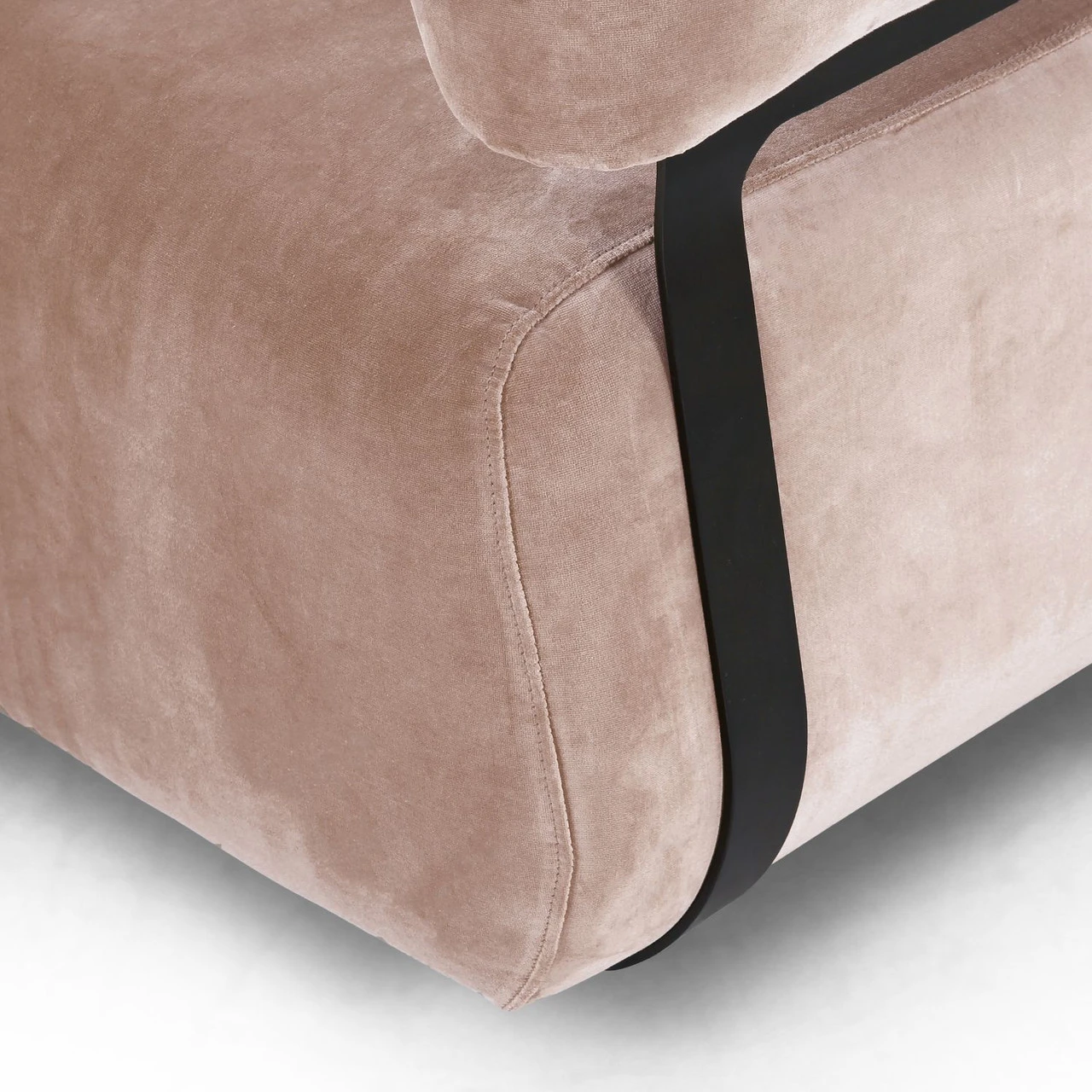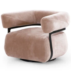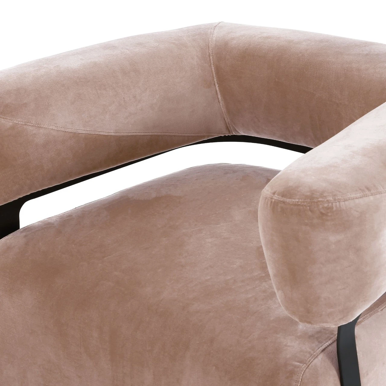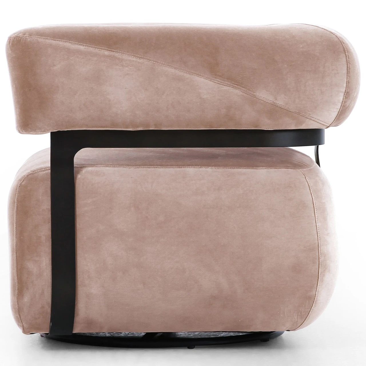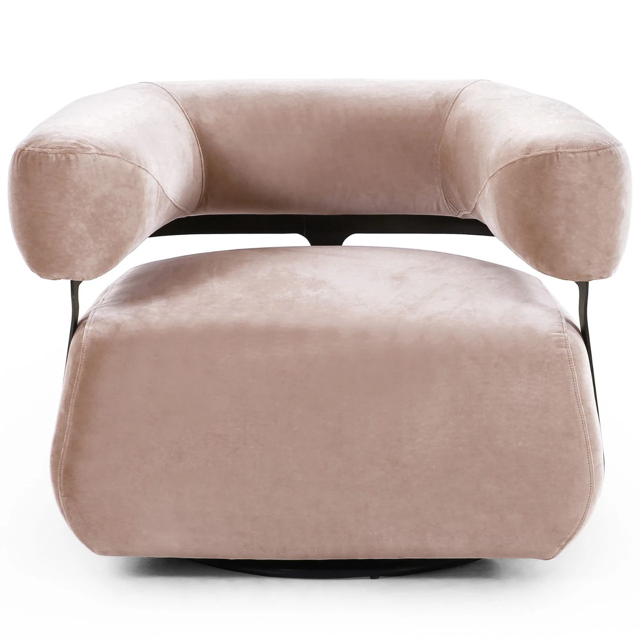 Eighties inspiration brought to modern speed. With a 360-degree swivel and black iron frame, an inflated silhouette speaks to the Brazilian influence behind this curvy seating style upholstered in a velvety cotton blend.